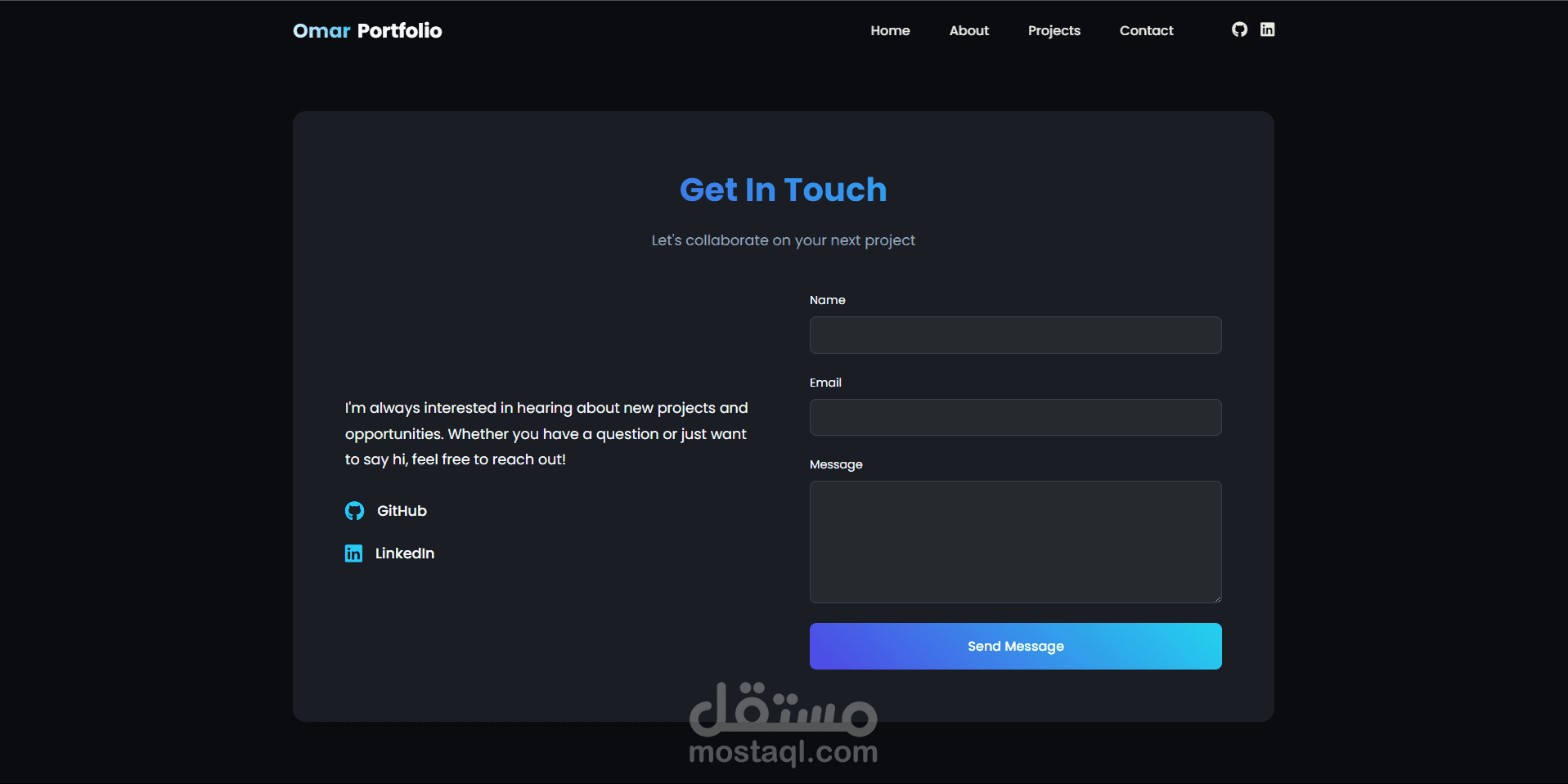 تكامل مع GitHub و LinkedIn لعرض الأعمال والتواصل بسهولة.