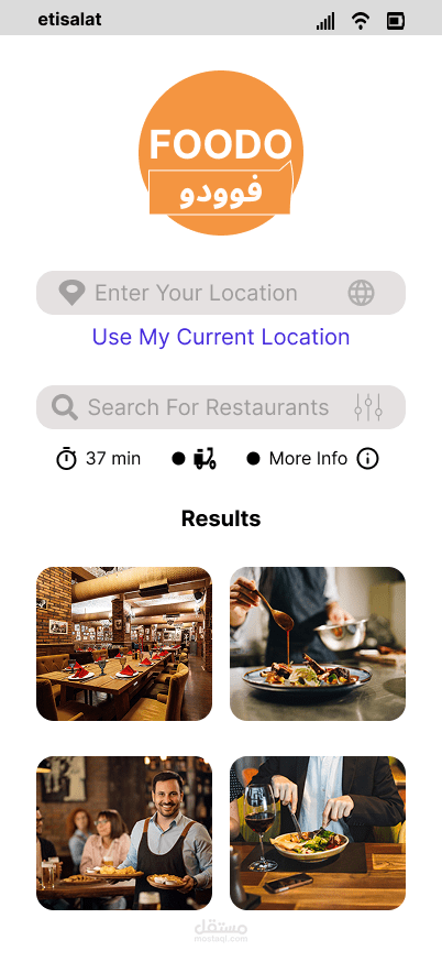 تصميم الصفحه الرئيسية لتطبيق توصيل طلبات باستخدام figma مع تصميم ال logo الخاص بالتطبيق