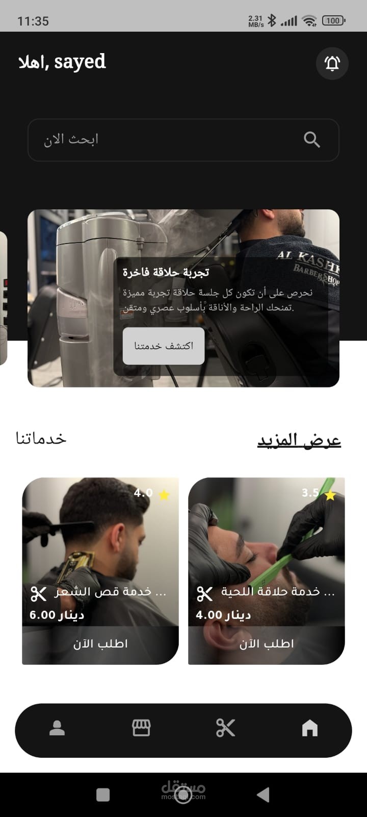 استكشاف الخدمات المتاحة مثل قص الشعر، حلاقة اللحية، والعناية الشخصية.