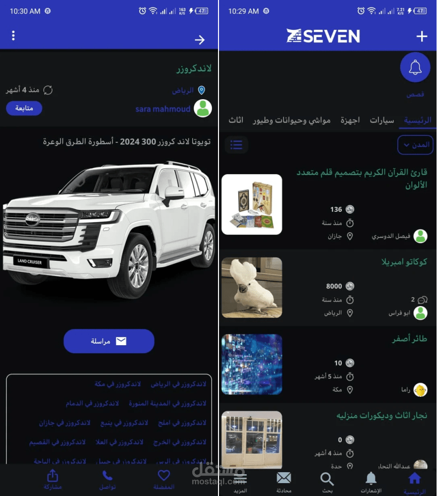 إلى جانب ذلك، يقدم "7Seven" ميزات بحث متقدمة تتيح تضييق نطاق النتائج بناءً على الموقع الجغرافي أو الفئة أو السعر، مع إرسال إشعارات فورية عند توفر إعلانات جديدة تهم المستخدم. يهتم التطبيق بالأمان والخصوصية من خلال تقنيات حديثة لحماية بيانات المستخدمين وضمان تجربة موثوقة.