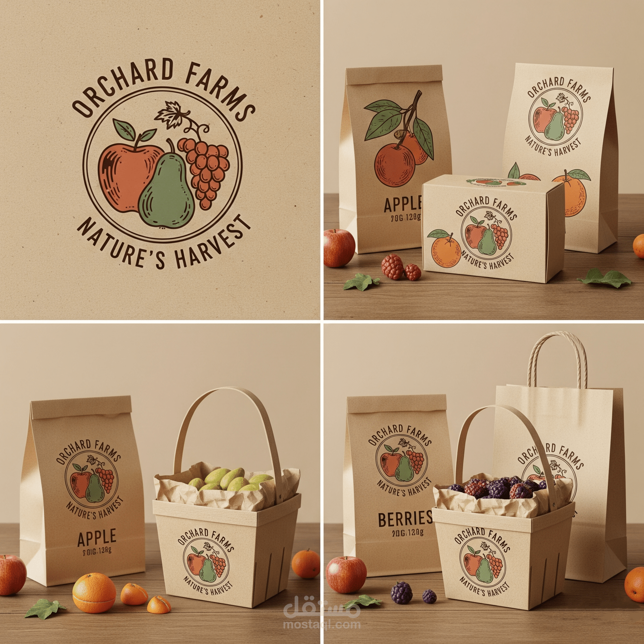 تعلن شركة متخصصة في تصنيع وتغليف الفواكه والتسويق عن رغبتها في تصميم هوية بصرية متكاملة تشمل: