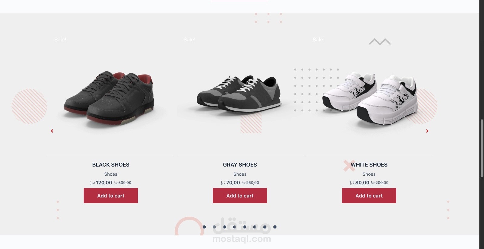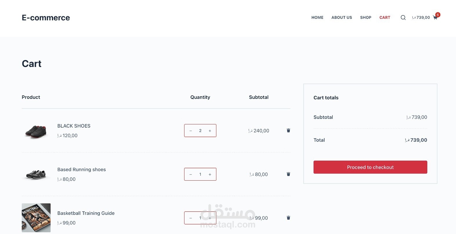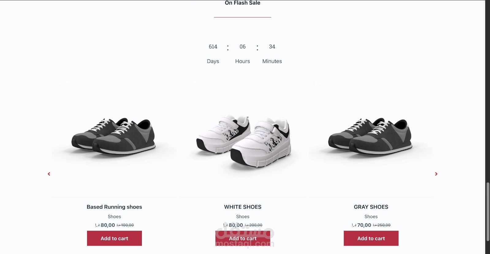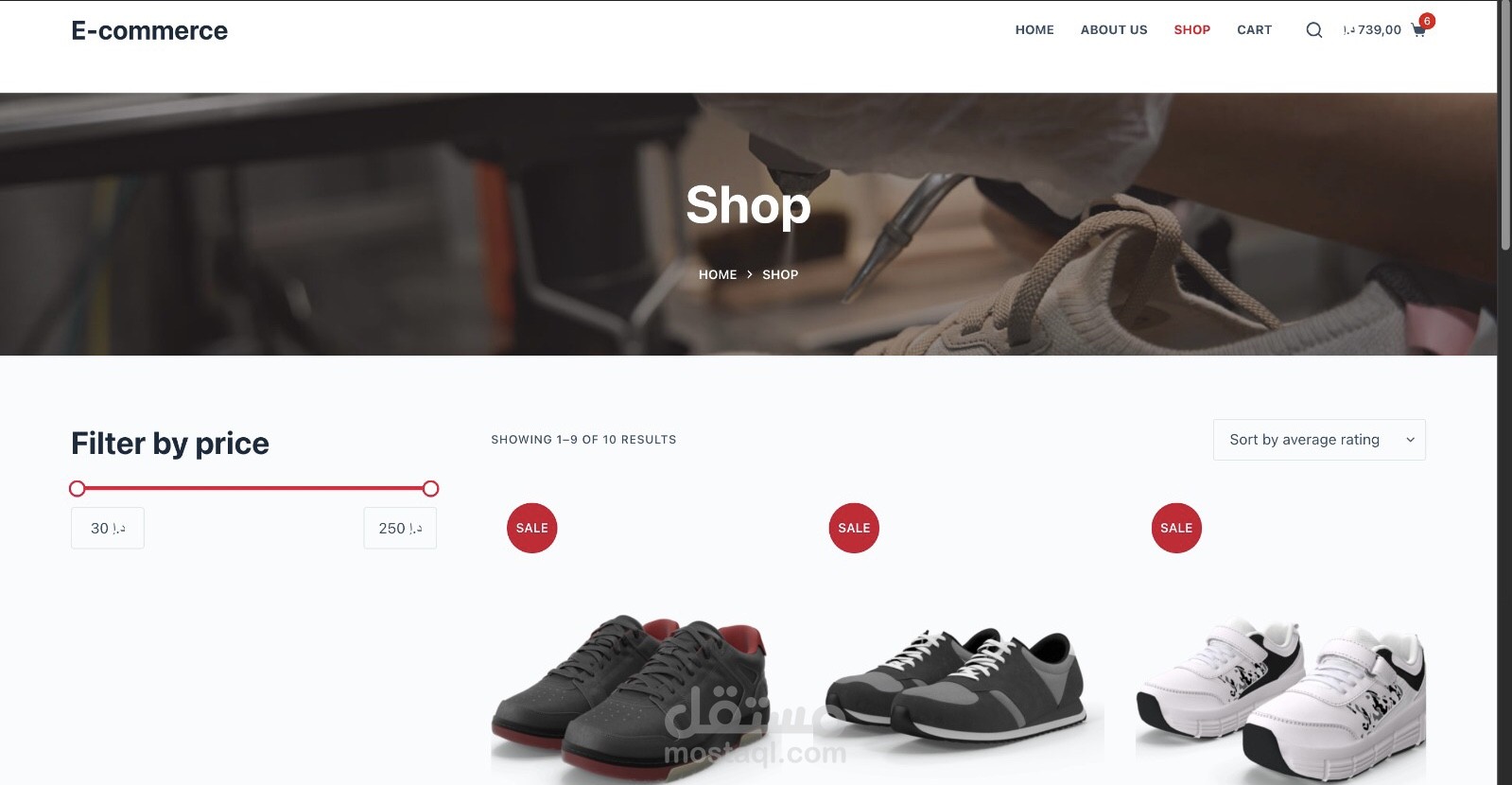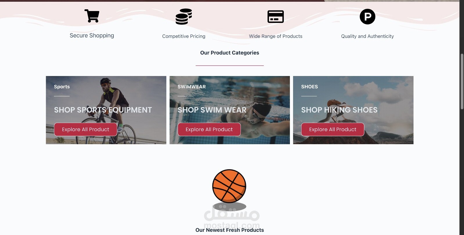 متجر الكتروني رياضي يتضمن اربع انواع من المنتجات