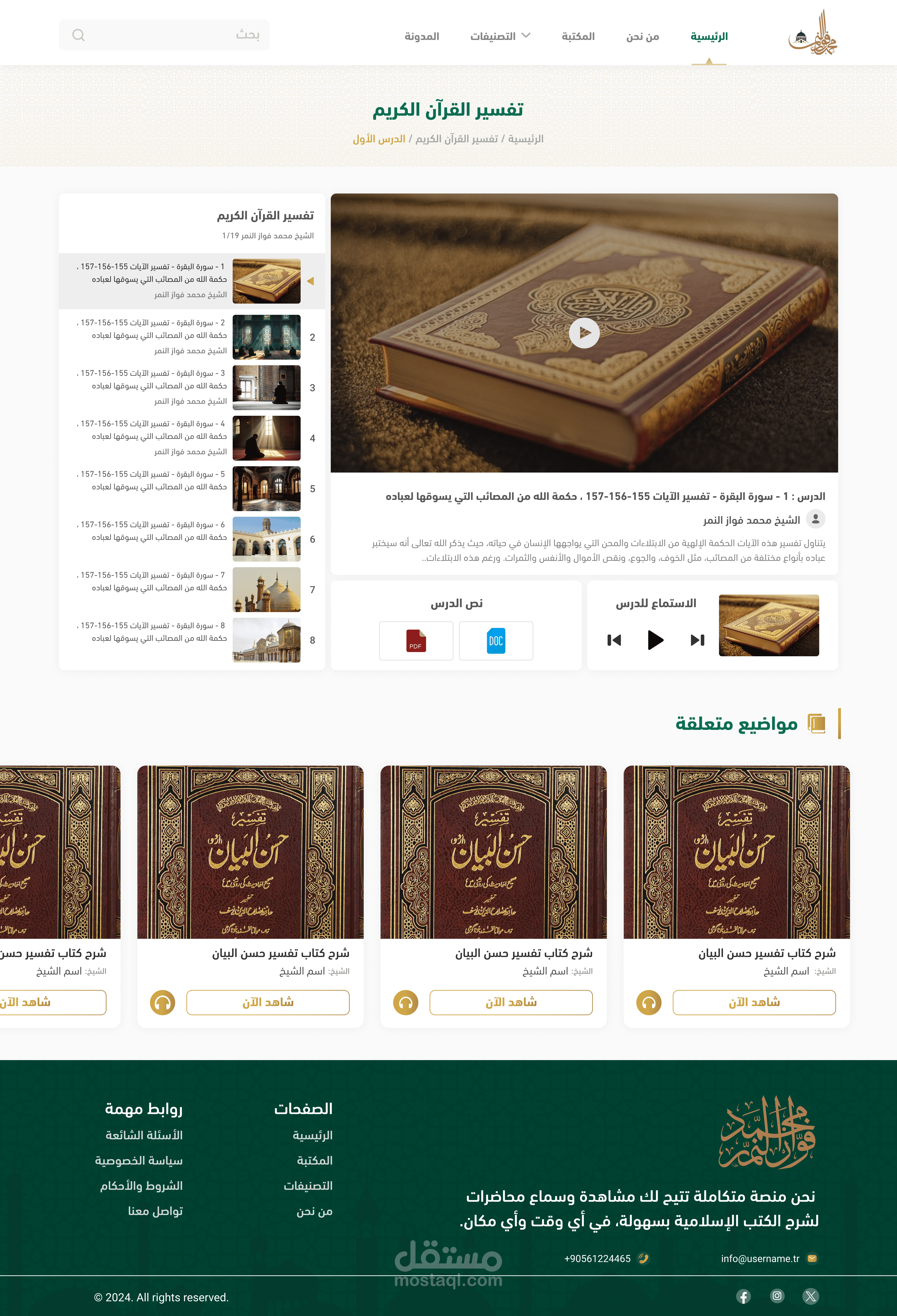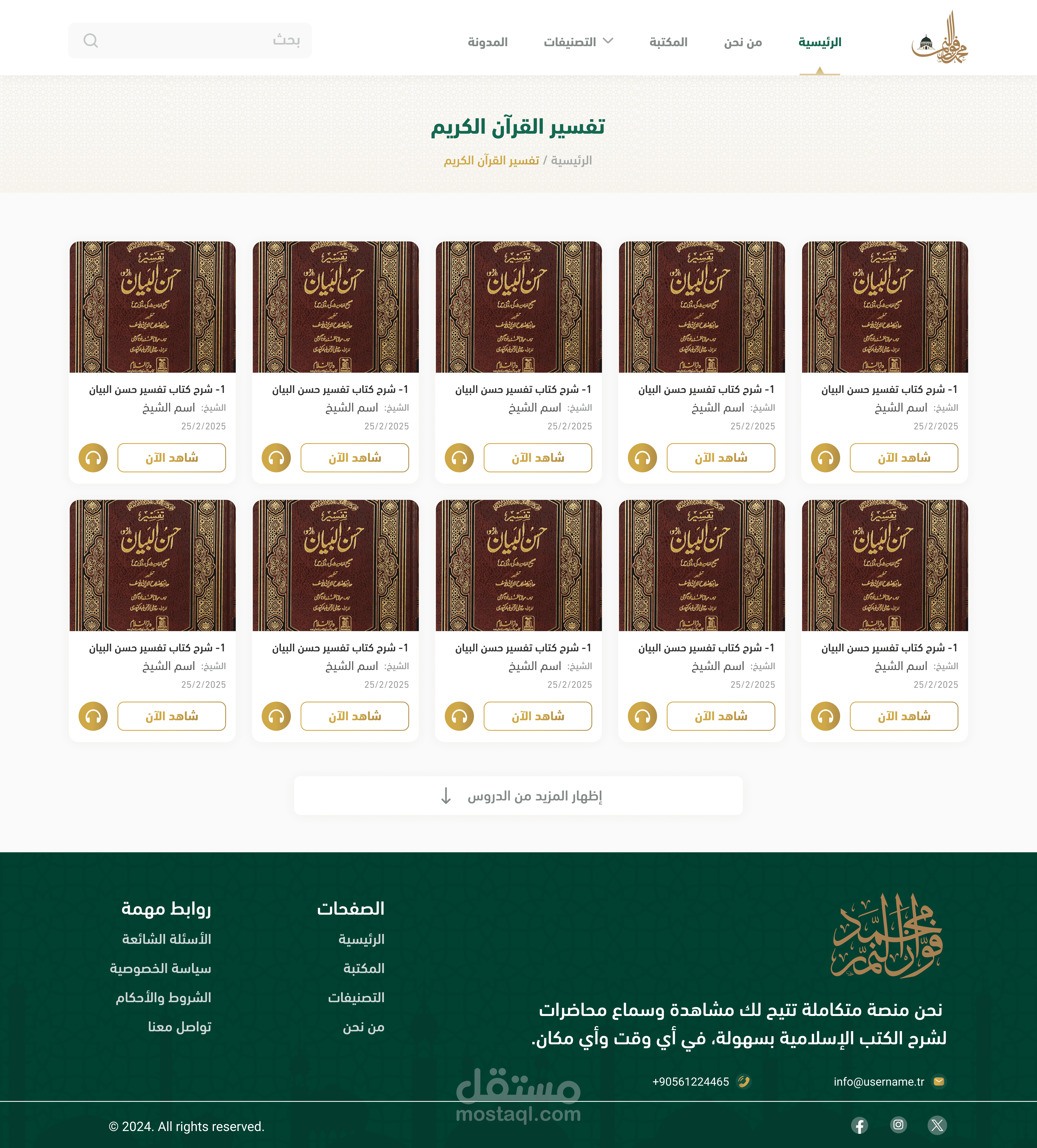 هذه المنصة شاملة تتيح للمستخدمين مشاهدة وسماع المحاضرات التي تشرح الكتب الإسلامية بكل سهولة، في أي وقت ومن أي مكان. تم تصميم المنصة لتوفير تجربة تعلم سلسة من خلال واجهة حديثة وسهلة الاستخدام، مما يضمن وصولًا ميسرًا وتنقلًا سلسًا.