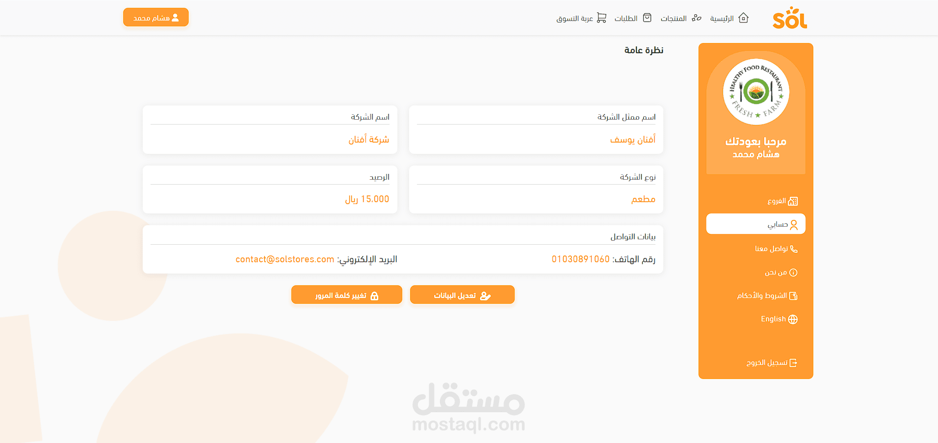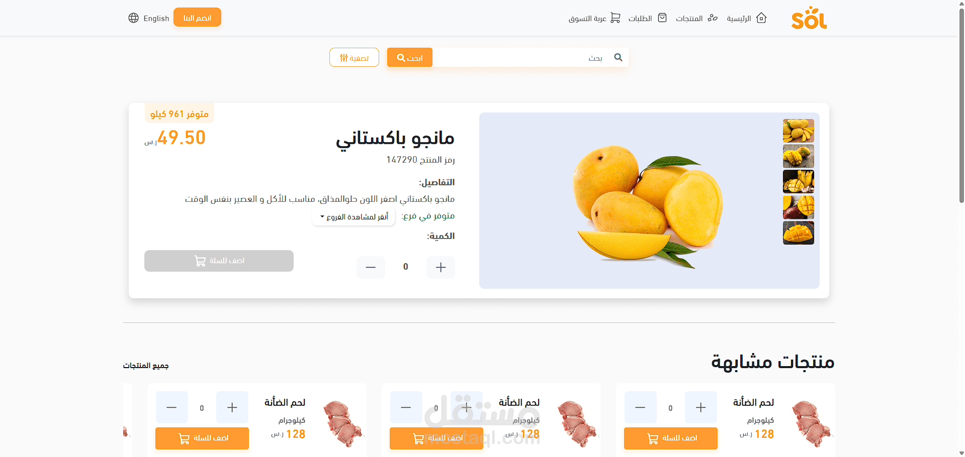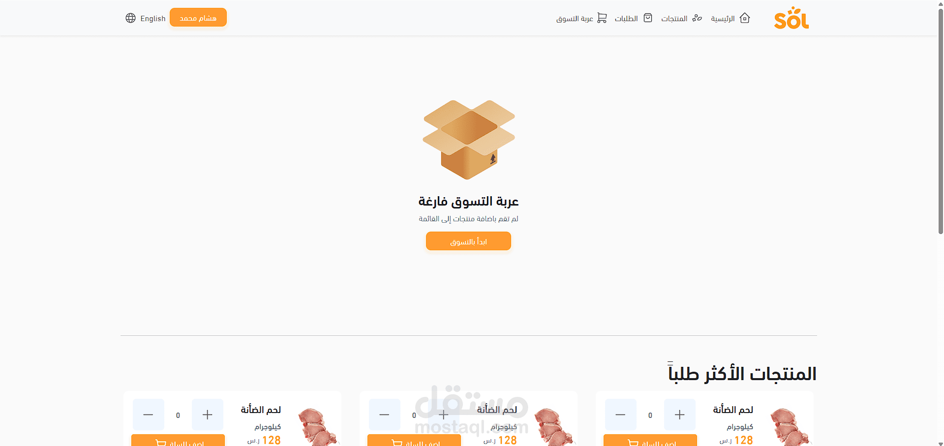 موفع solstores واحد من ابرز الاعمال التي عملت عليها و هو عبارة عن موقع تجارة الكتروني لتوريد الزبناء بمختلف المواد الفذائية، العمل عبارة عن واجهة الموقع مبنية بتقنيات متعددة ك html, css, sass, bootstrap و متجاوب مع كل الشاشات، كما يتضنن عدة ميزات منها: