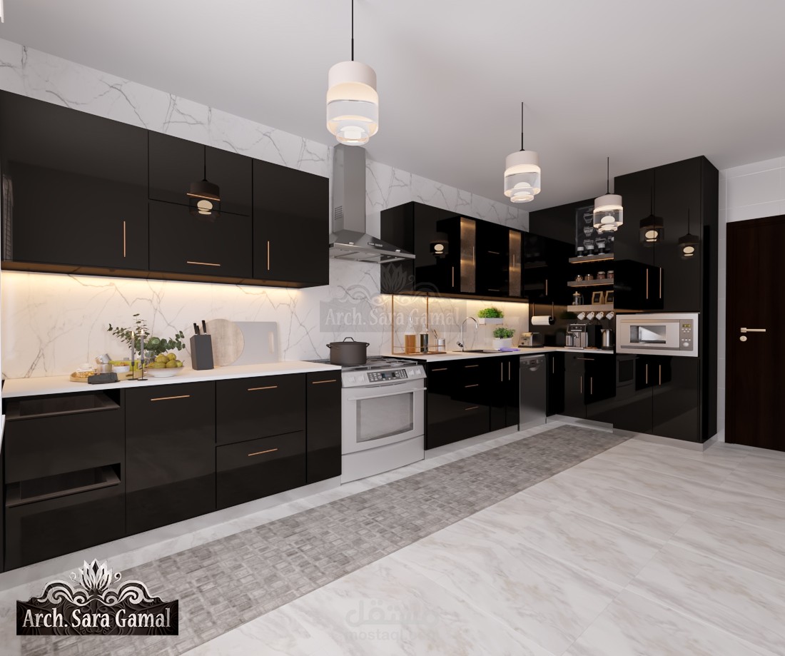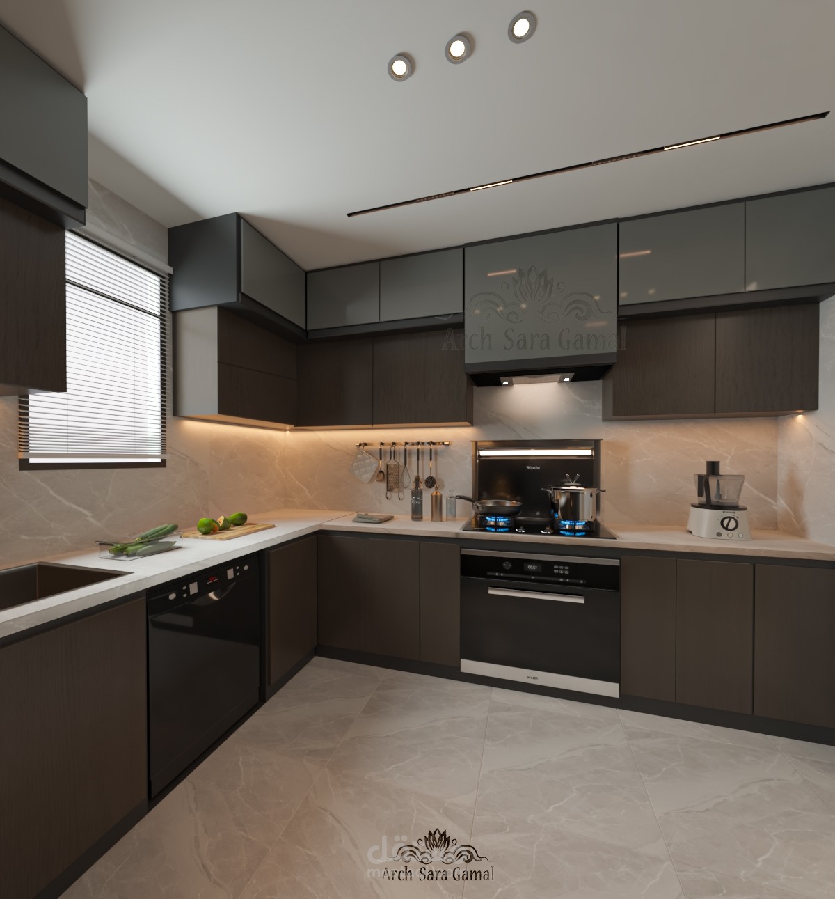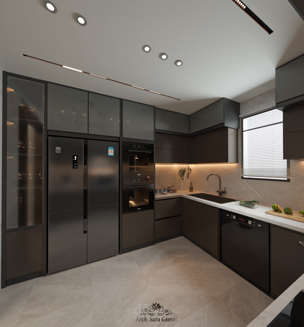 يعتمد هذا المطبخ على تصميم حديث وأنيق يجمع بين الجمال والوظيفة، حيث تم تنسيق الألوان والخامات بعناية لخلق مساحة مريحة وفاخرة. كما ان يجمع هذا المطبخ بين التصميم الجذاب والراحة العملية، حيث يوفر بيئة مثالية للاستخدام اليومي بلمسة فاخرة وعصرية. بفضل تنسيق الألوان، استغلال المساحات، والإضاءة المدروسة، أصبح المطبخ مكانًا يجمع بين الجمال والوظيفة بأفضل شكل ممكن.