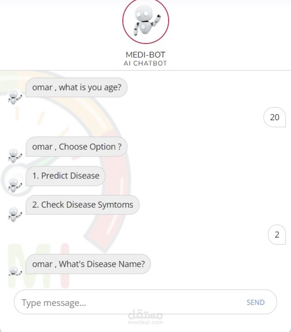 an AI-powered conversational assistant designed to assist users with healthcare-related queries. It leverages Natural Language Processing (NLP) and Machine Learning (ML) to understand and respond to user input, providing support for tasks like symptom checking, and health education