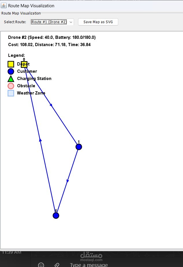 طورنا خوارزمية هجينة تجمع بين الخوارزمية الجينية (Genetic Algorithm) وخوارزمية المحاكاة التلدينية (Simulated Annealing) مع 3 مشغلات بحث محلي، مما يسمح بإيجاد المسار الأمثل بكفاءة عالية وتقليل التكلفة الإجمالية للتوصيل.