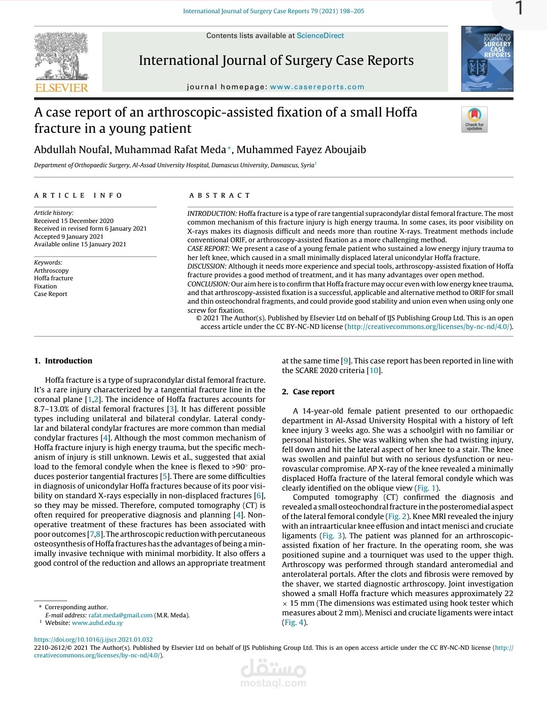 A case report of an arthroscopic assisted fixation of a small Hoffa fracture in a young patient
