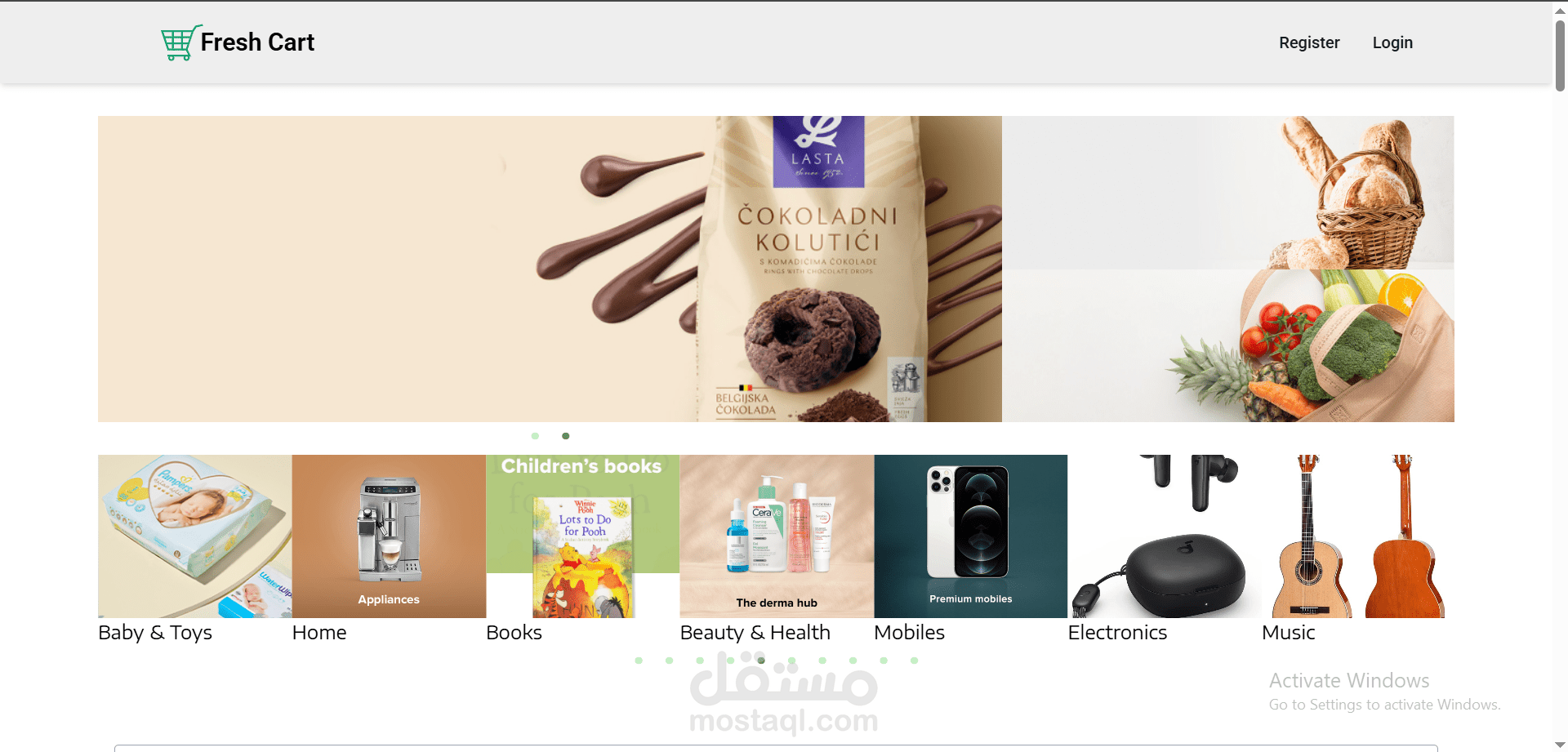 Fresh Cart E-Commerce هو موقع تجارة إلكترونية متكامل يتيح للمستخدمين شراء المنتجات عبر الإنترنت بسهولة.