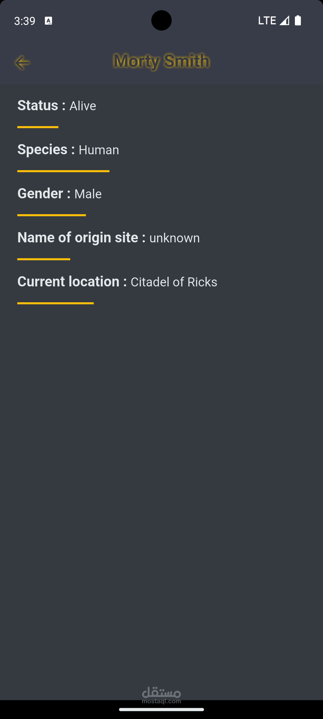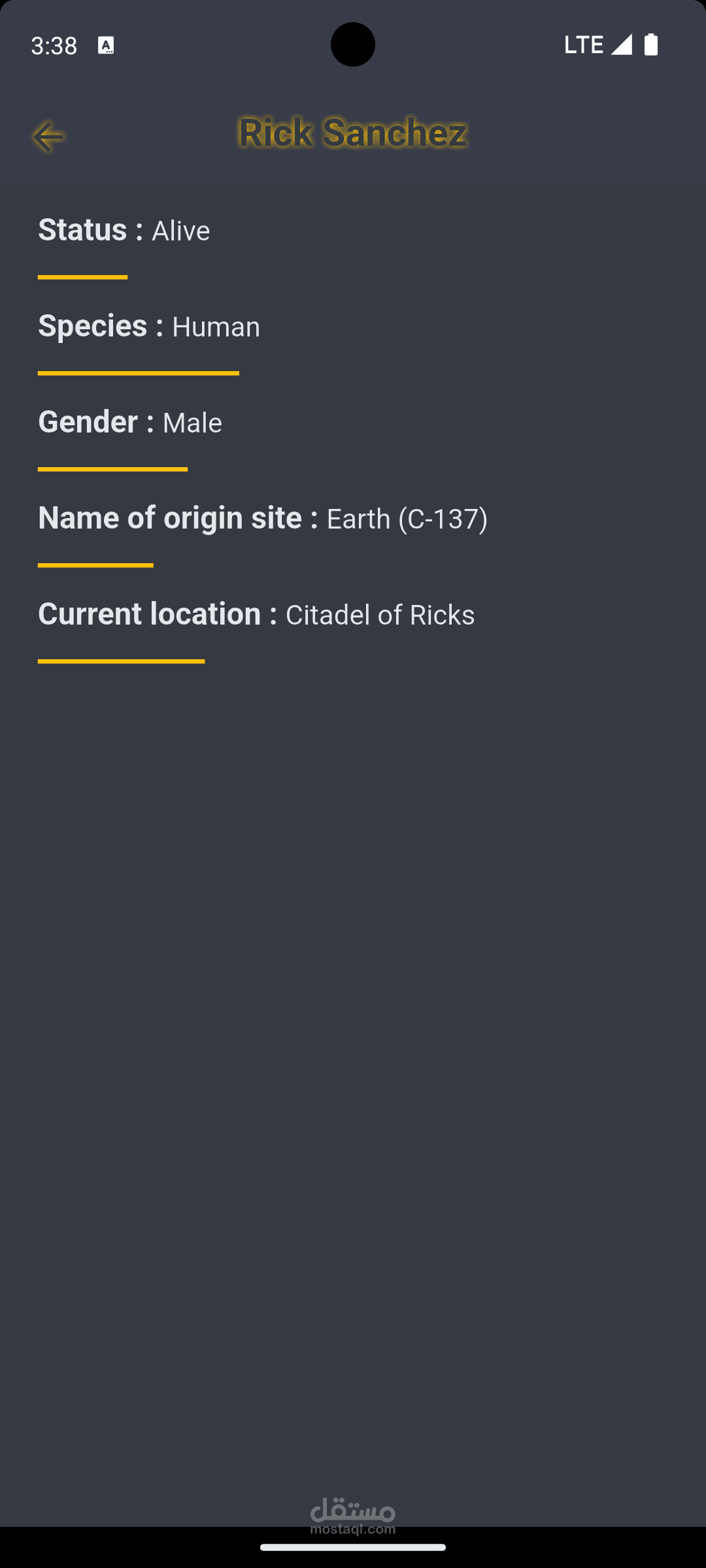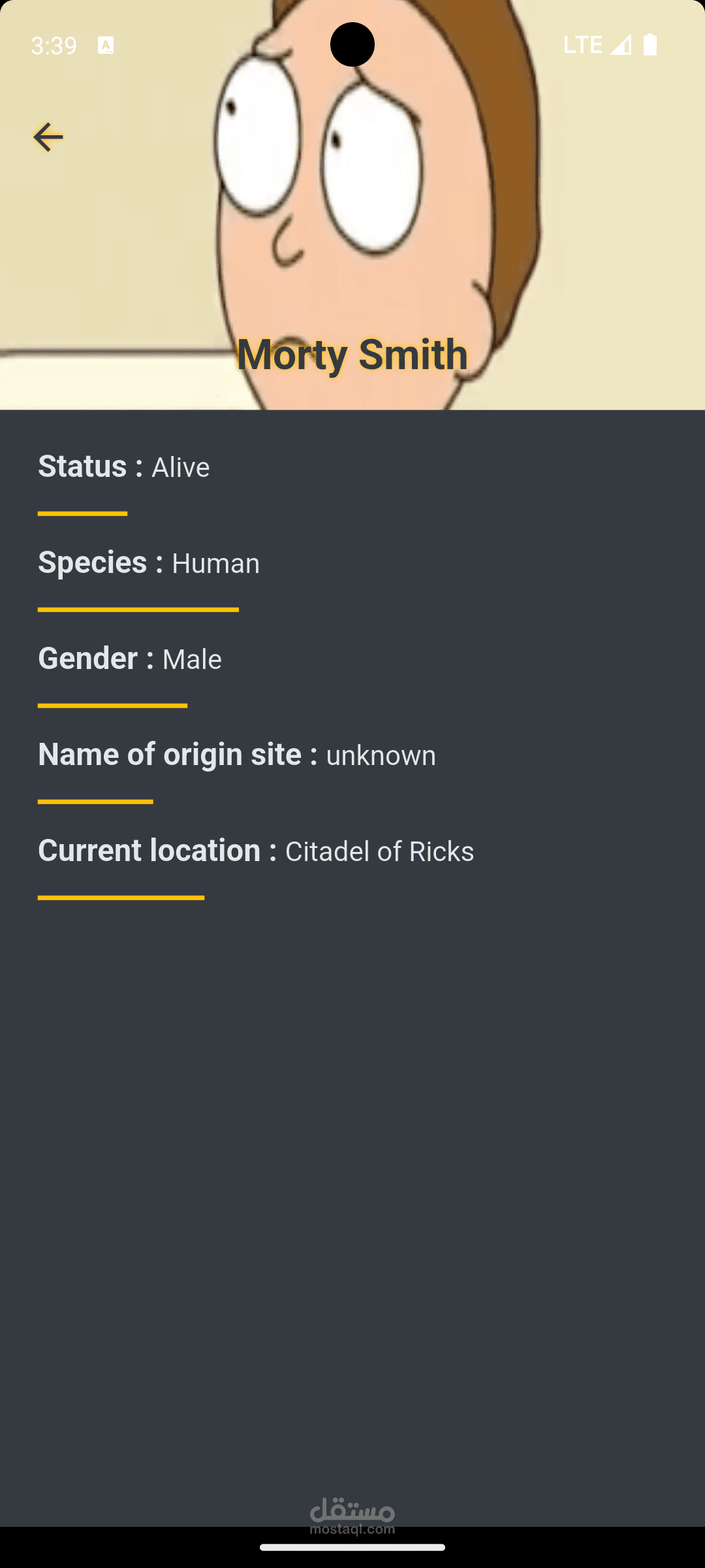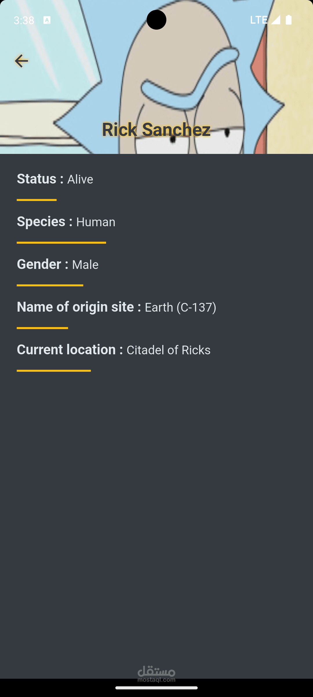 تطبيق يعرض جميع شخصيات مسلسل Rick and Morty مع تفاصيل كاملة لكل شخصية (الاسم، الحالة، الكوكب، عدد الحلقات التي ظهر فيها). التطبيق يعتمد على استهلاك API خارجي مع دعم العمل في حالة عدم الاتصال بالإنترنت. تصميمه بسيط ومرن وسهل الاستخدام.