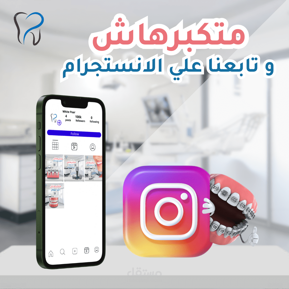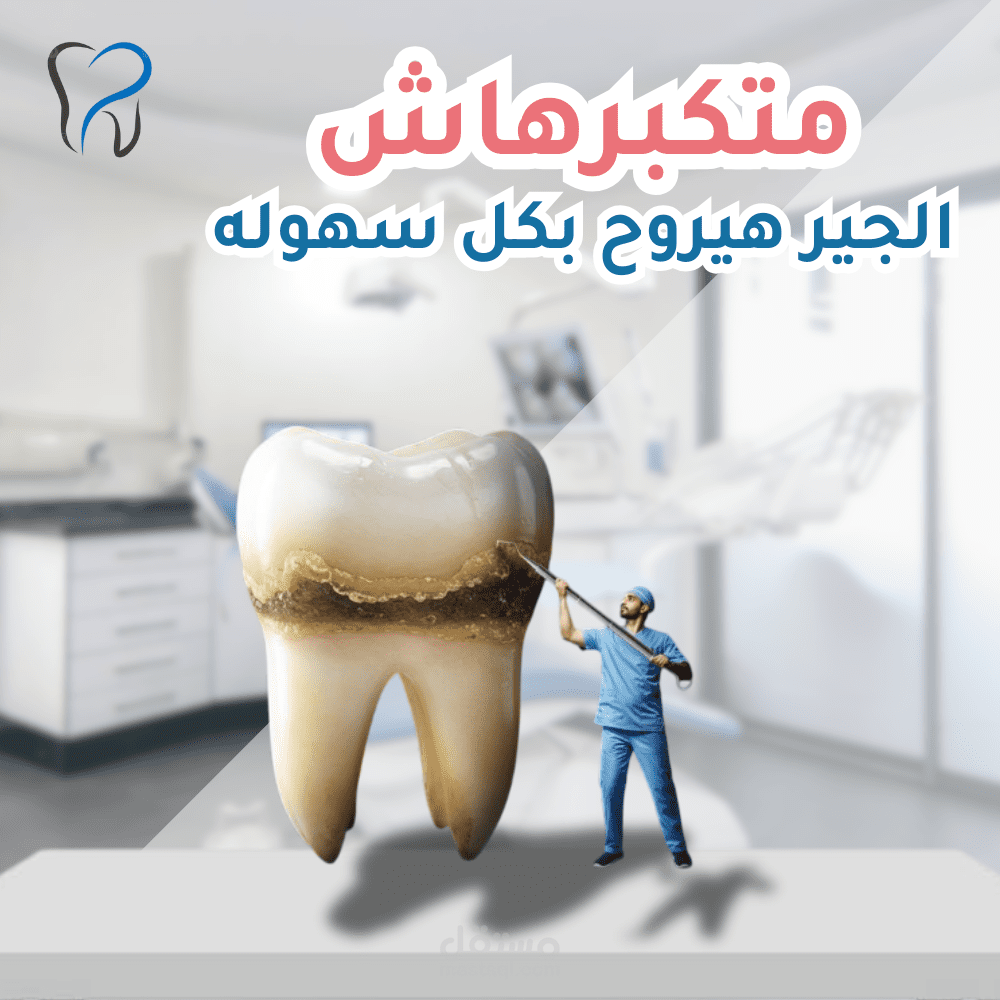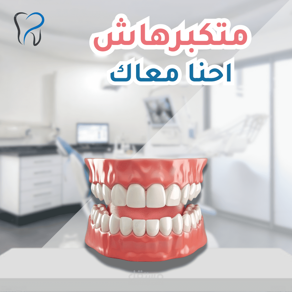 تصميم اعلان احترافي يجذب الانتباه برسائل مشجعة و كلمات تبث الطمأ نينة ليكسر حاجز الخوف من علاج الاسنان, يتميز بأسلوب عصري و صور تعبيرية توضح الخدمات المقدمة ,ما يعكس احترافية العيادة و يشجع المرضى على اتخاذ الخطوة نحو ابتسامة صحية و جميله