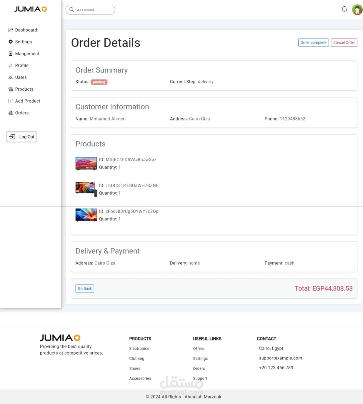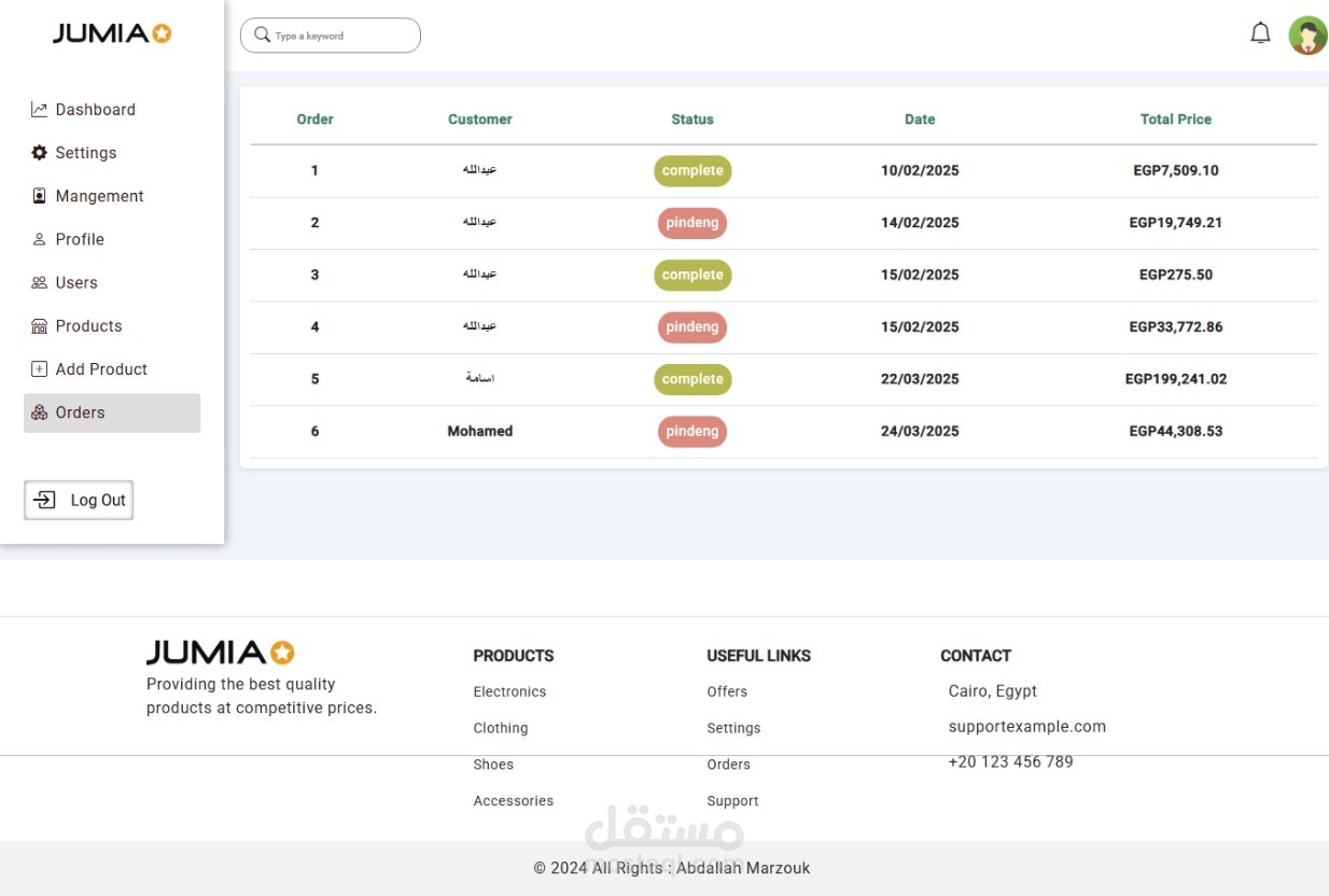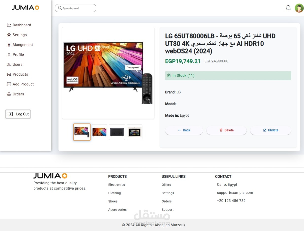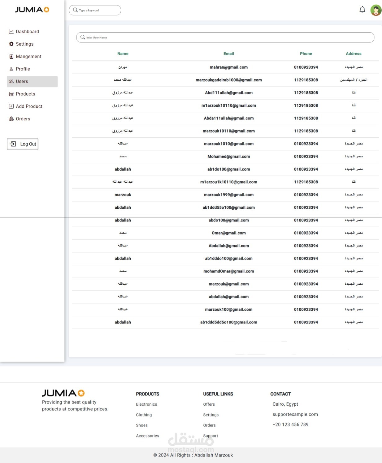 لوحة تحكم تفاعلية ومتجاوبة بالكامل مستوحاة من جوميا. المشروع يهدف إلى تحسين تجربة إدارة المنتجات والمستخدمين من خلال تصميم عصري وميزات متقدمة، بالإضافة إلى تعزيز الأمان والتحكم في الصلاحيات.