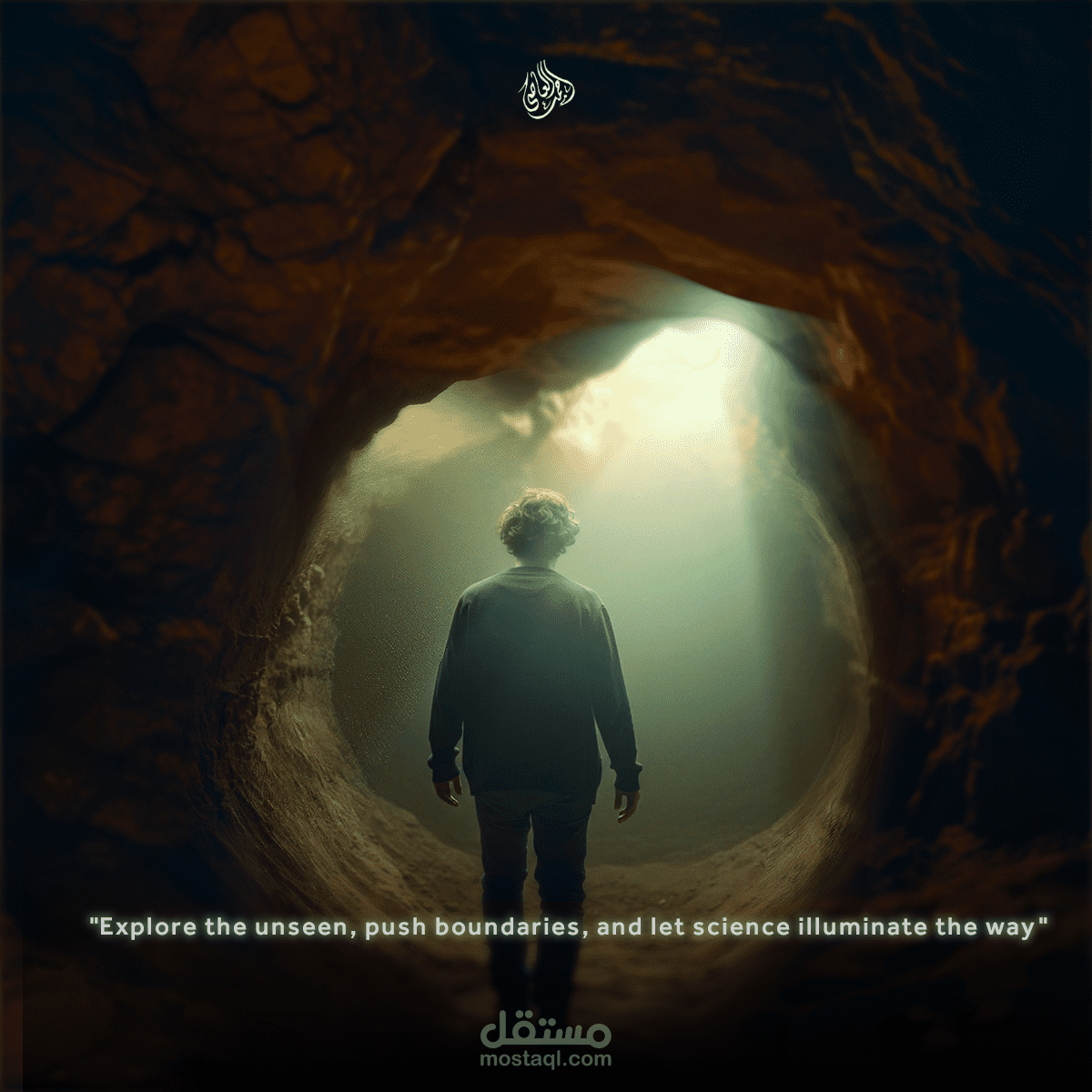 A surreal, thought-provoking visual that symbolizes the journey of discovery. The composition portrays a lone figure stepping into the unknown, guided by light—a metaphor for knowledge, exploration, and the pursuit of truth.