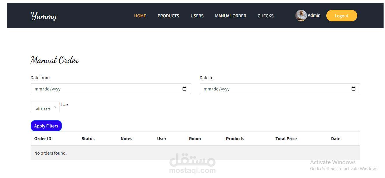إنشاء الطلبات وعرض جميع الطلبات (Checks) حسب تاريخ محدد.