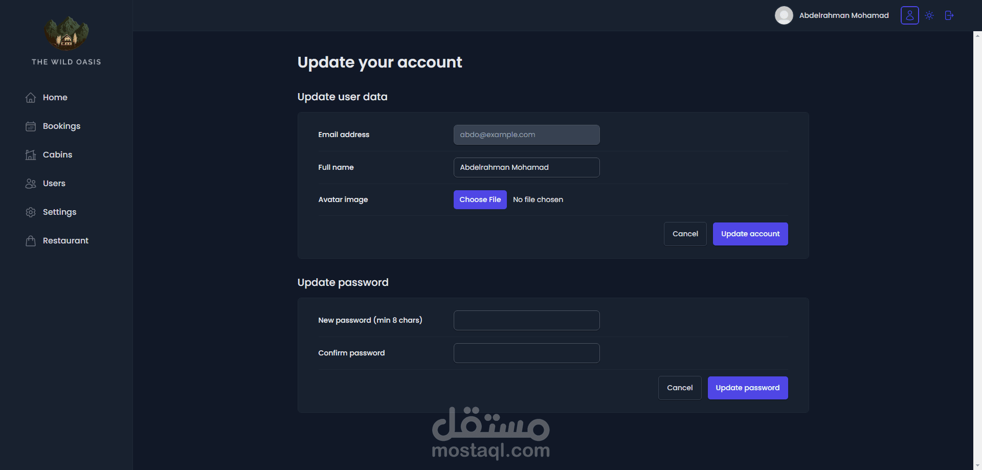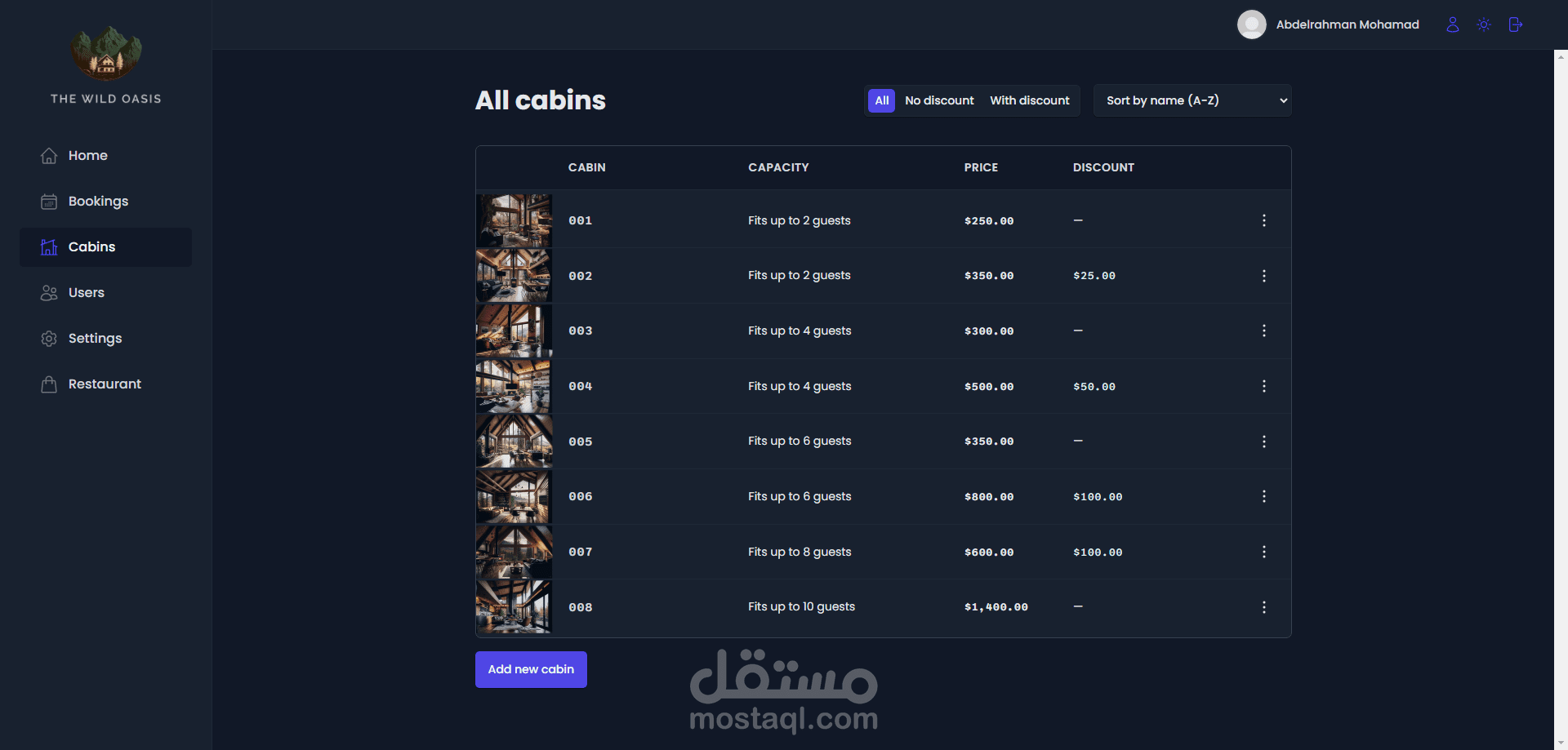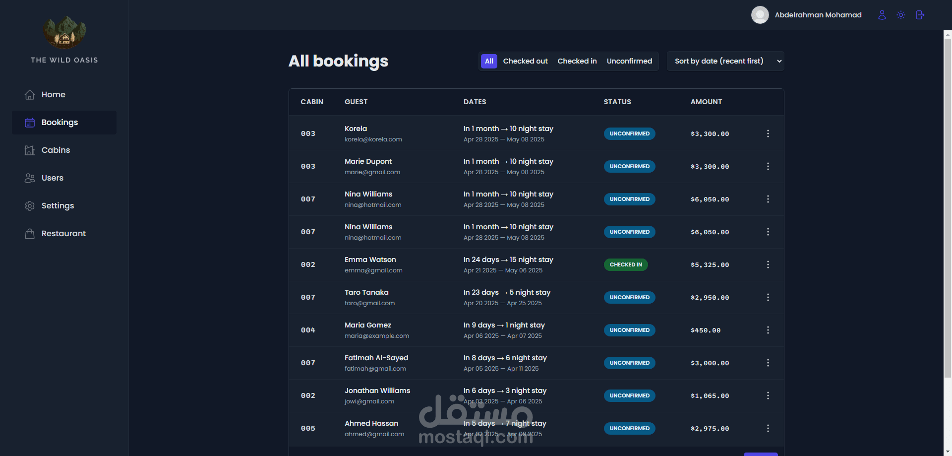 قمت بتطوير موقع لإدارة الفنادق مخصص لموظفي الفندق، ويشمل لوحة تحكم، وصفحة للحجوزات، وصفحة للغرف.
