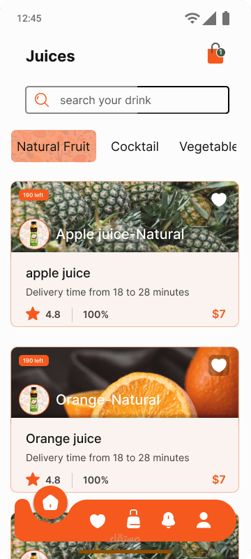 يُعد Jolia app design الوجهة المثالية لعشّاق العصائر الطازجة، حيث يتيح للمستخدمين طلب العصائر الطبيعية، السموذي، والمشروبات الصحية من أفضل المتاجر والمقاهي القريبة، مع خيارات تخصيص المكونات والتوصيل السريع إلى باب المنزل.