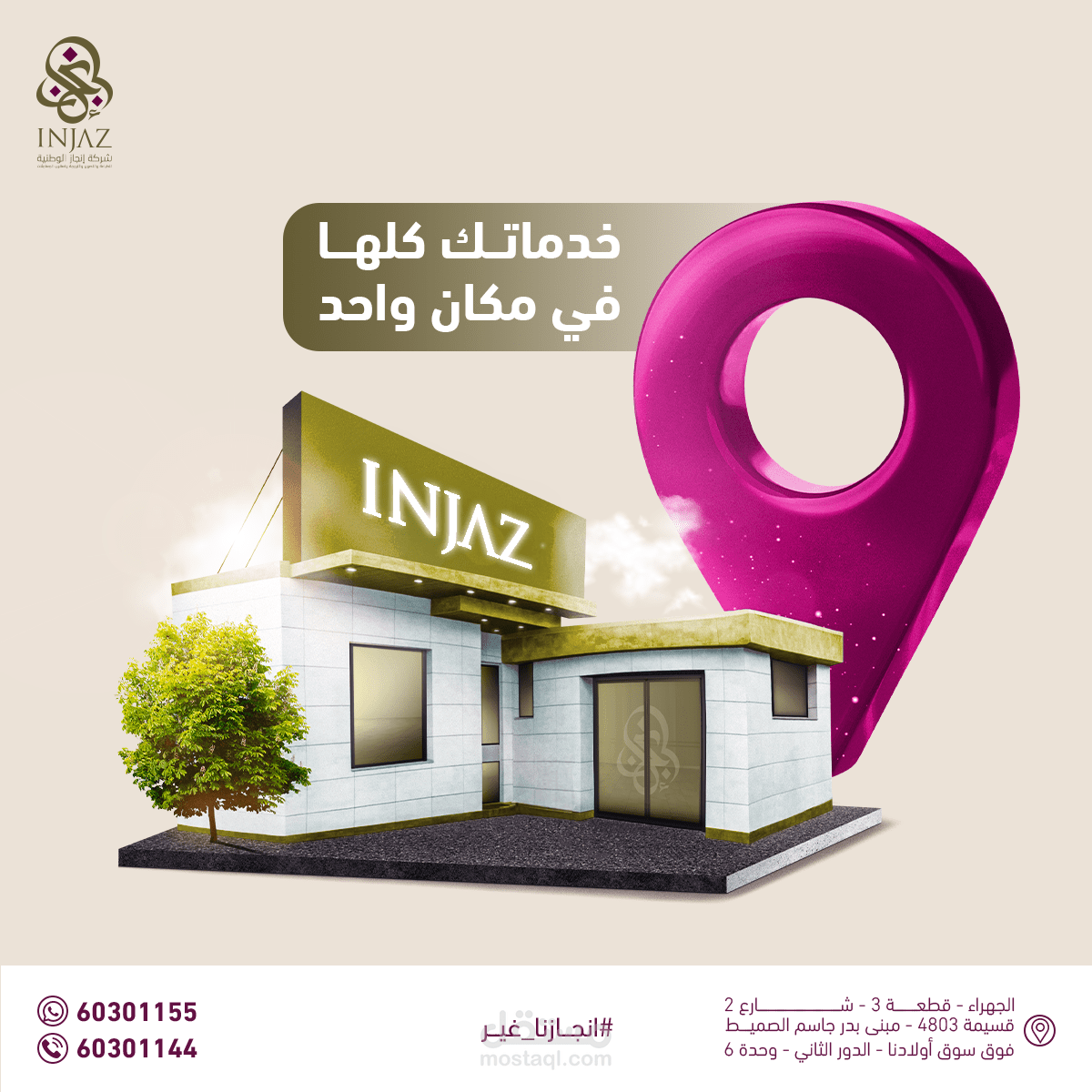 تصاميم سوشيال ميديا تضم مجالات عديدة, عيادة أسنان, شركة تشطيبات وتصميم داخلي, شركة انجاز الوطنية للطباعه والتصوير والترجمة