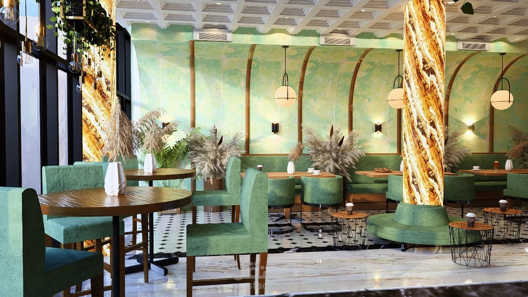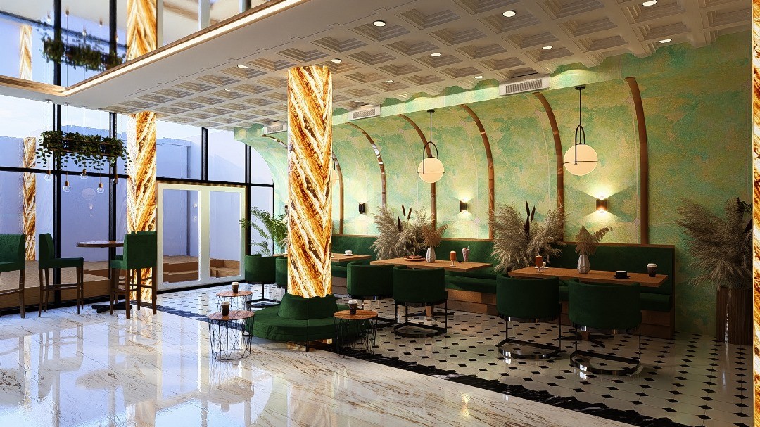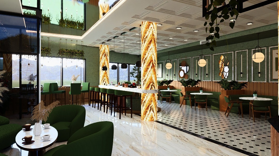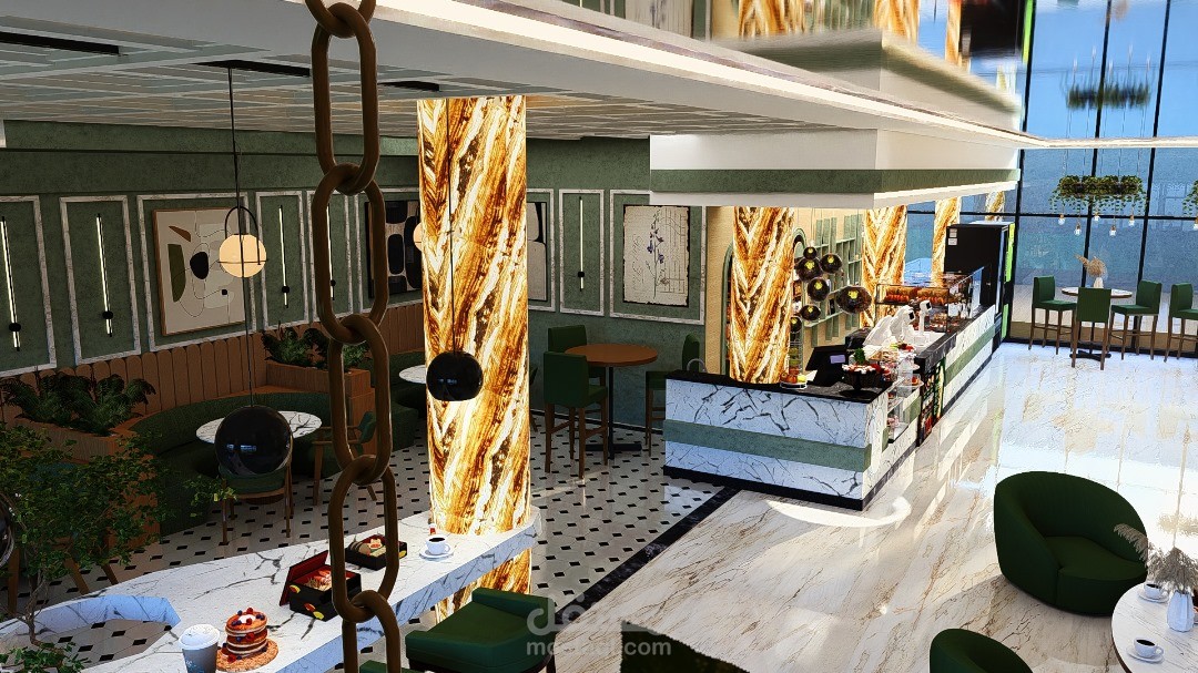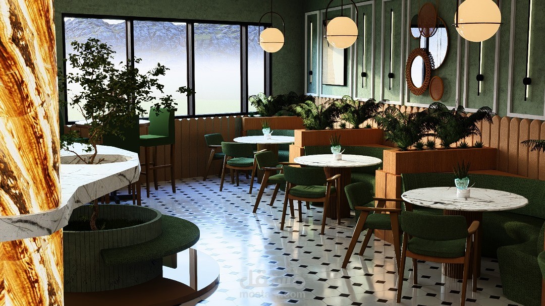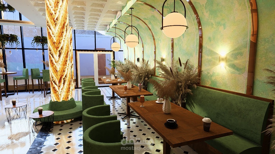 يرتكز التصميم الداخلي للمقهى على خلق أجواء دافئة ومريحة، تجمع بين الأناقة والوظيفية لتوفير تجربة ممتعة للزوار. يتميز الفضاء بتناسق بين الخامات الطبيعية مثل الخشب والحجر، مع لمسات حديثة من المعدن والزجاج، مما يضفي طابعًا عصريًا ودافئًا في آنٍ واحد.