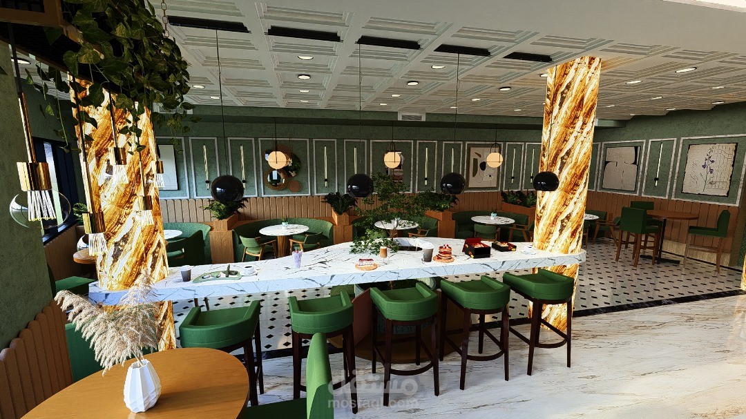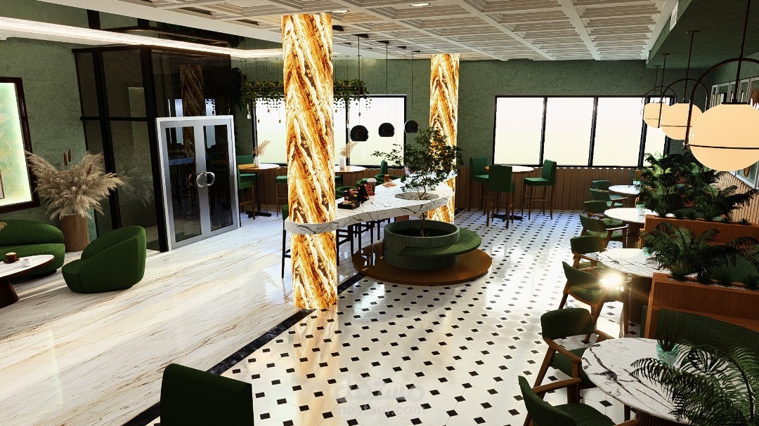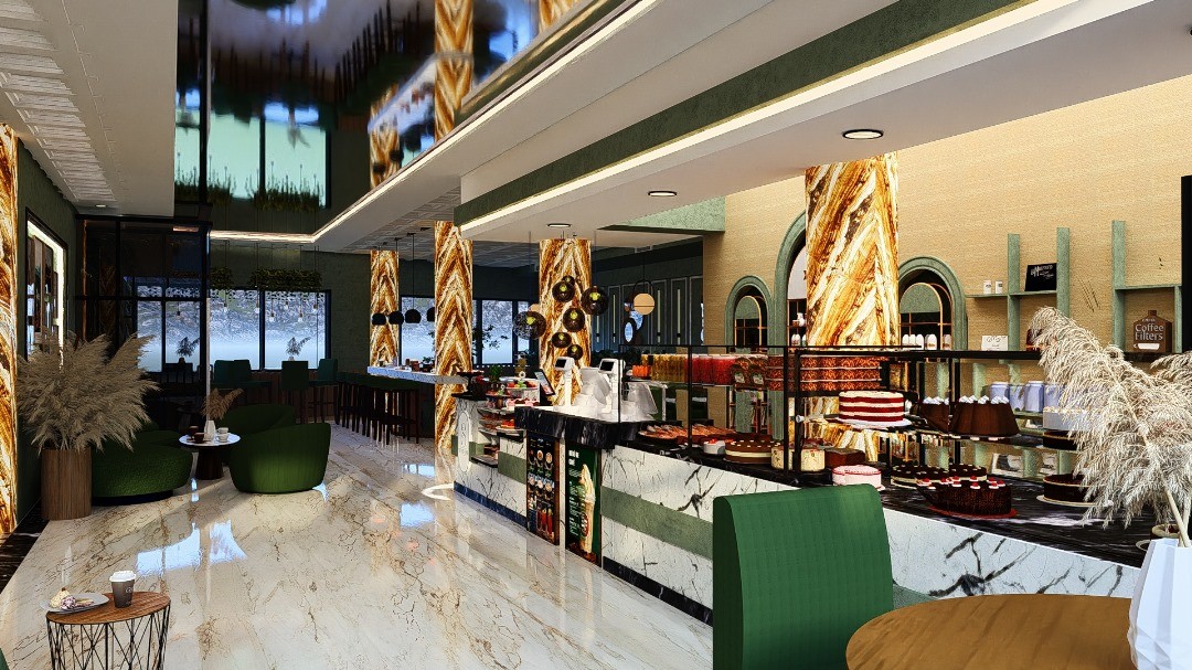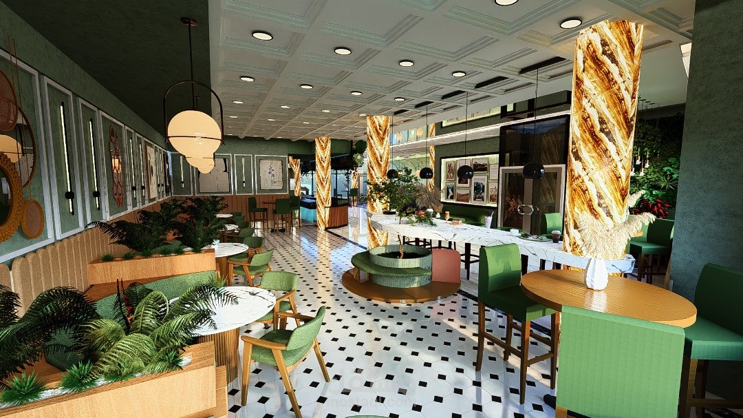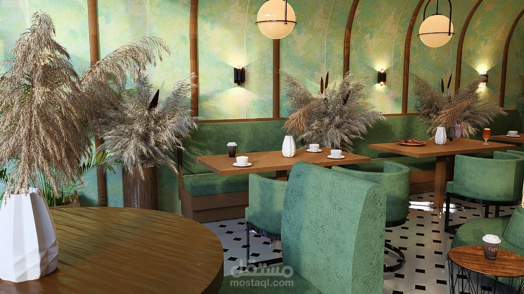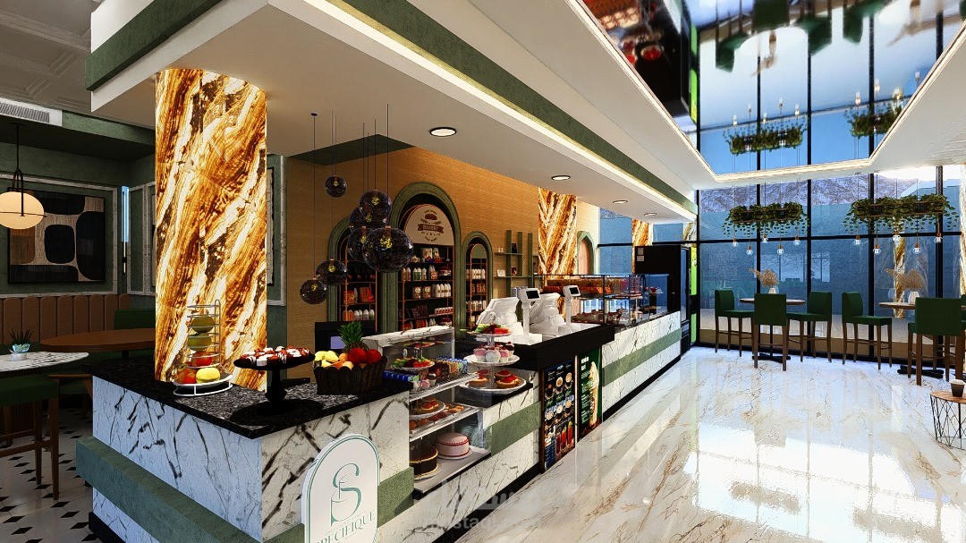 يرتكز التصميم الداخلي للمقهى على خلق أجواء دافئة ومريحة، تجمع بين الأناقة والوظيفية لتوفير تجربة ممتعة للزوار. يتميز الفضاء بتناسق بين الخامات الطبيعية مثل الخشب والحجر، مع لمسات حديثة من المعدن والزجاج، مما يضفي طابعًا عصريًا ودافئًا في آنٍ واحد.