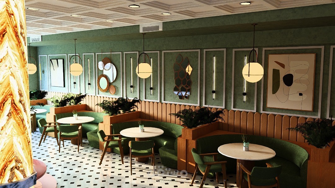 تم توزيع الجلسات بعناية لضمان الخصوصية دون عزل الزبائن عن الأجواء العامة، مع اعتماد إضاءة ذكية تجمع بين الضوء الطبيعي من النوافذ الكبيرة والإضاءة الدافئة للمصابيح، مما يعزز الشعور بالراحة ويحفز الإنتاجية.