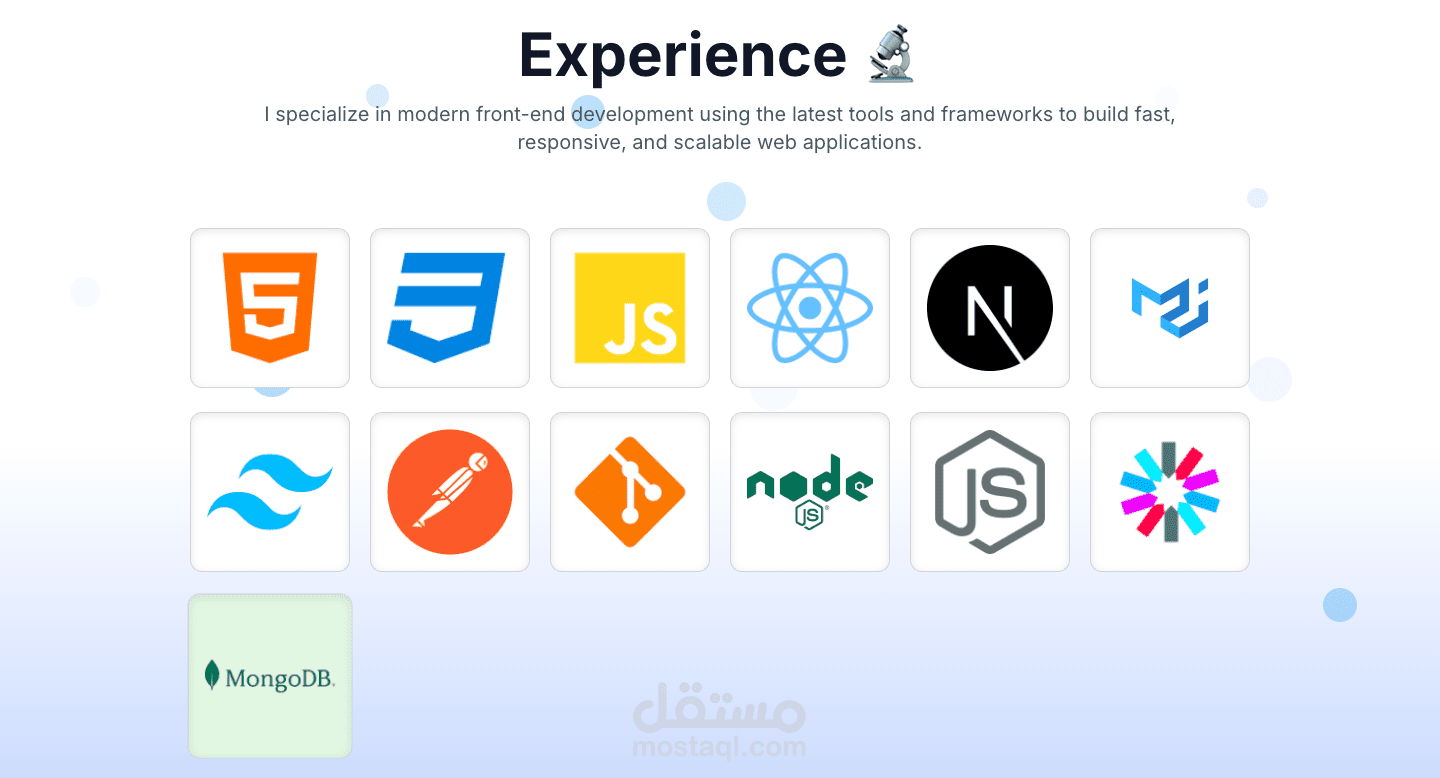 وأمتلك خبرة واسعة في HTML، CSS، JavaScript، مما يمكنني من تحويل أي تصميم إلى موقع متجاوب وسلس باستخدام أحدث التقنيات مثل: