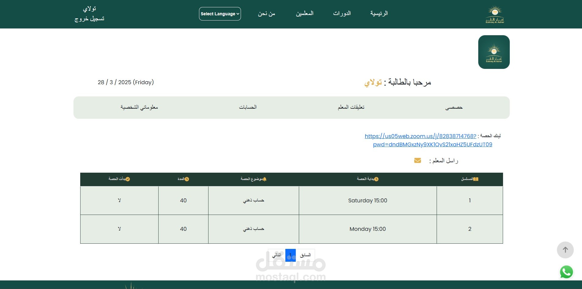 لوحة تحكم لكل من الطلاب والشيوخ لإدارة الجلسات
