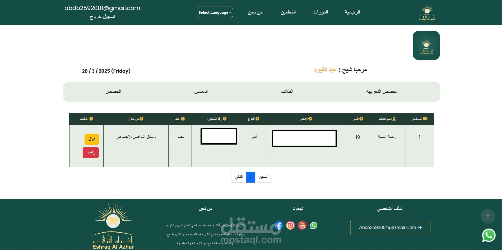 قمت بتطوير إشراق الأزهر، وهو موقع إلكتروني يسهل التواصل بين الطلاب الراغبين في حفظ القرآن الكريم وبين الشيوخ المتخصصين في التحفيظ. يوفر الموقع تجربة سلسة للمستخدمين من خلال، حجز جلسات التحفيظ، وإدارة مواعيدهم بكل سهولة ورسائل خاصة بين المعلم والطالب