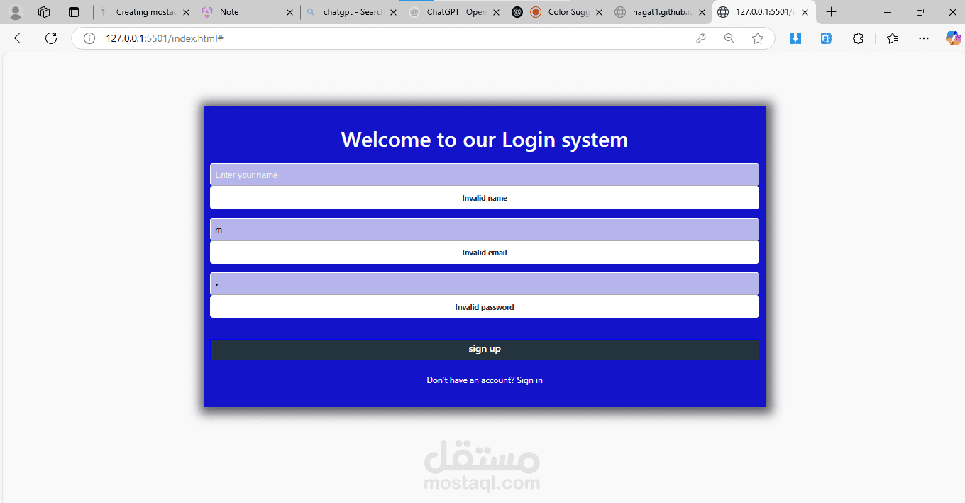 عملت login ,register pages منطبق عليها شروط الauthentication باستخدام javascript ,bootstrap