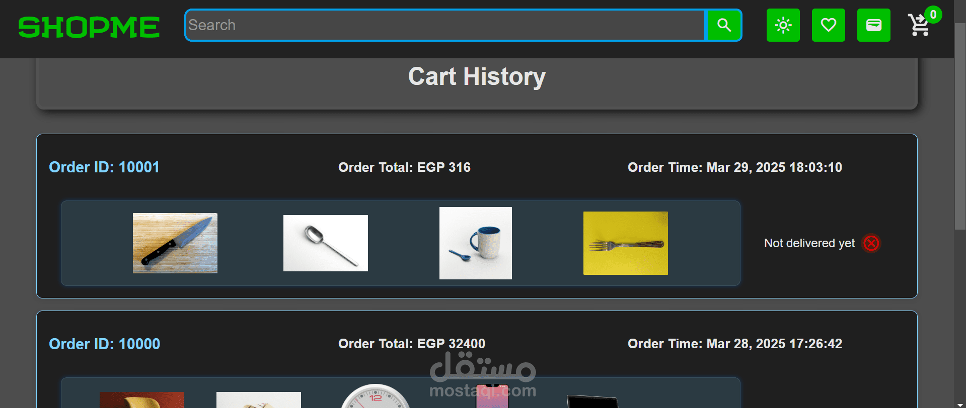 4- متابعة طلب الشراء (بعد ثلاثة أيام يتحول من "لم يصل بعد" إلى "وصل").