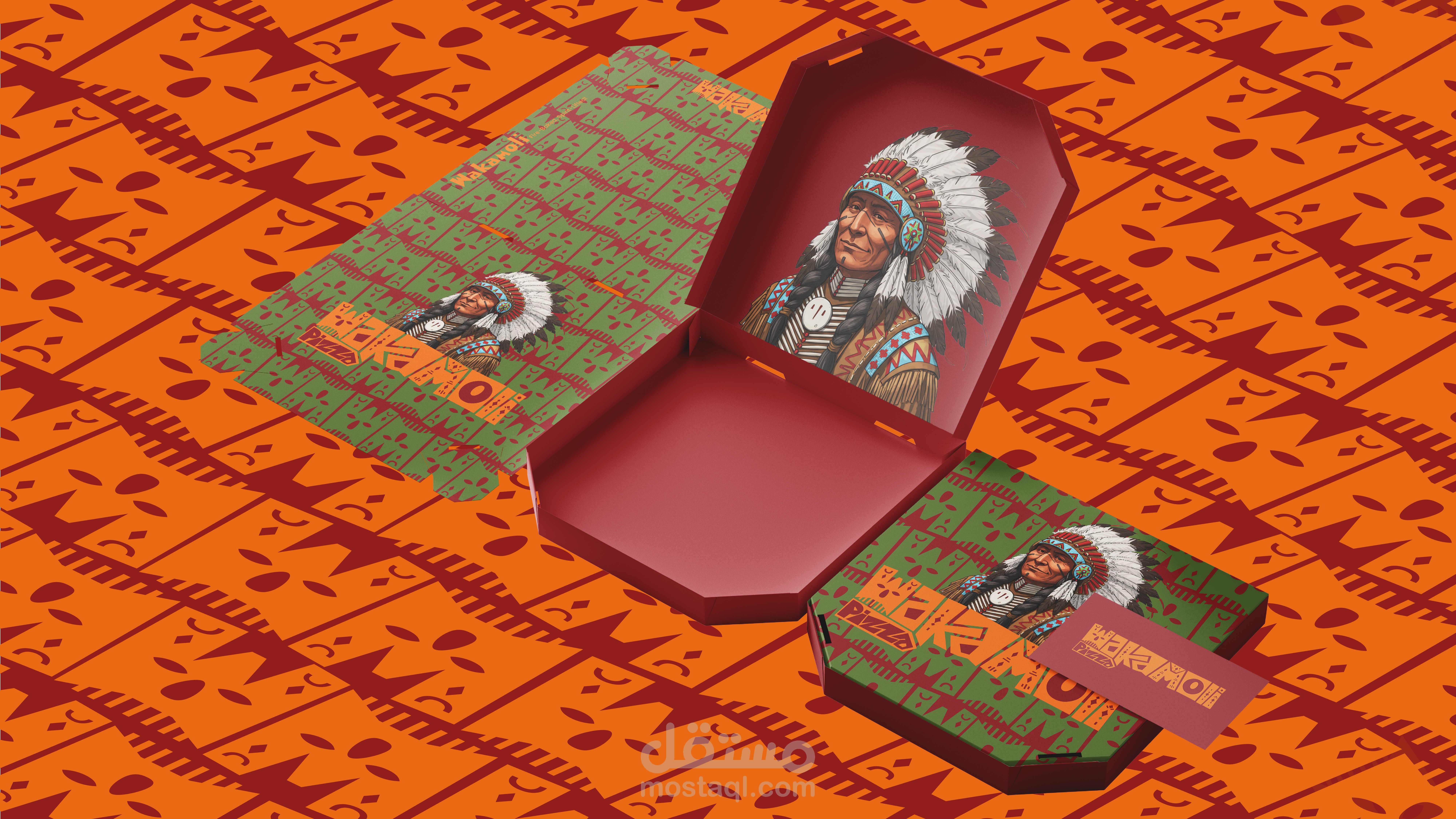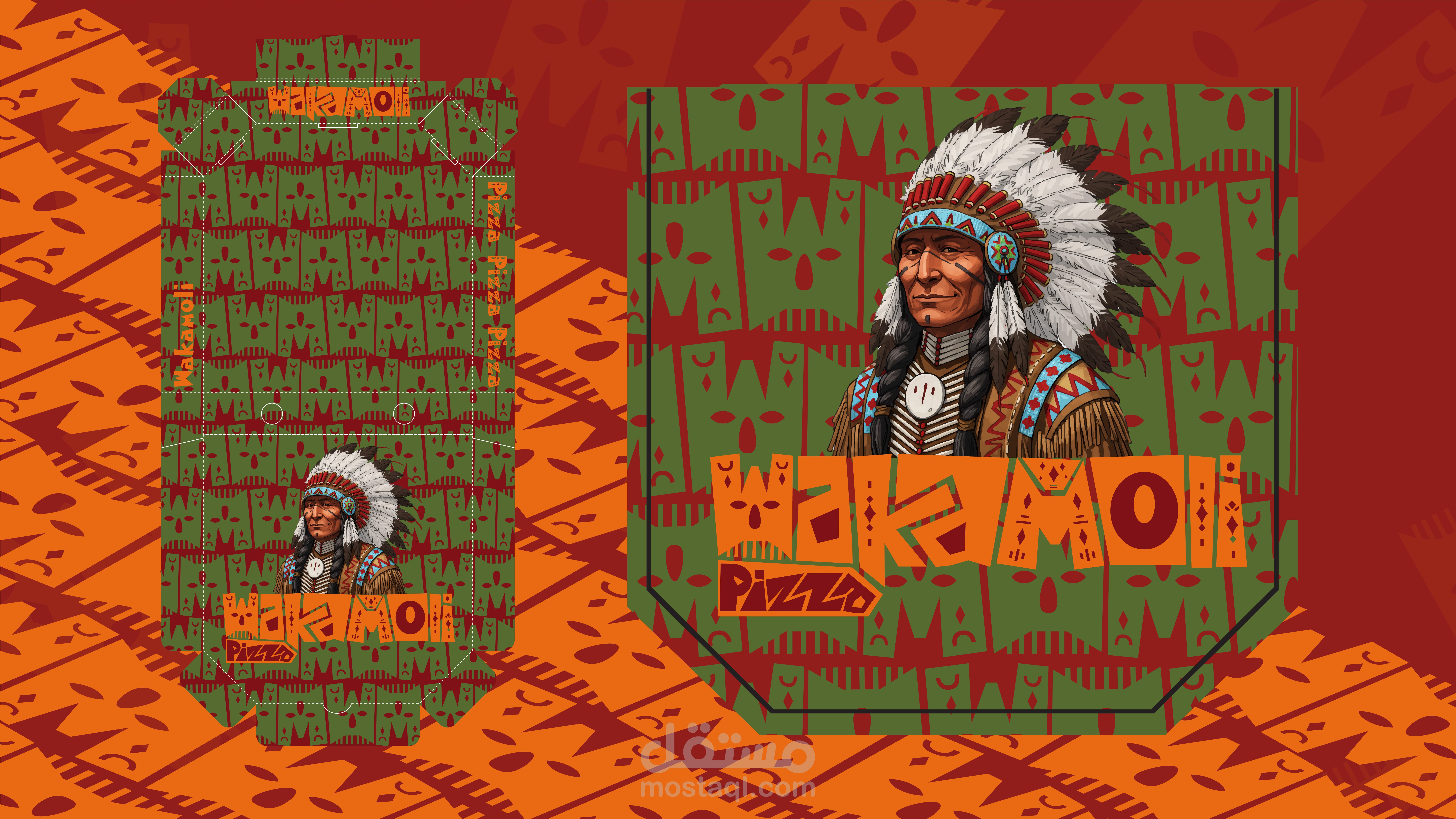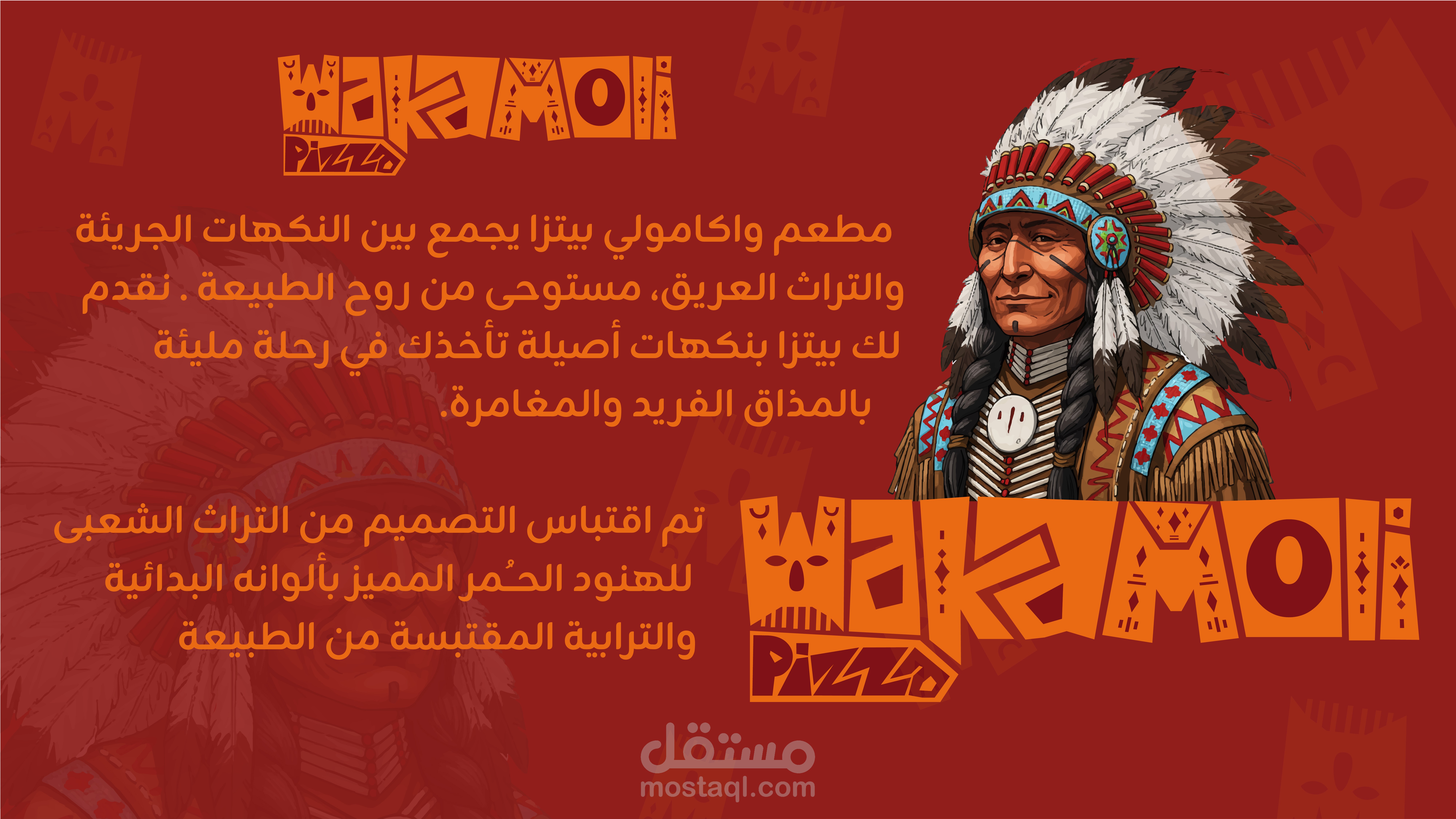 WAKAMOLI PIZZA – Where Tradition Meets Bold Design! WAKAMOLI PIZZA is more than just a restaurant—it's an experience rooted in the rich traditions of Native American culture, combined with the fiery passion of wood-fired pizza. The branding captures the essence of tribal patterns, handcrafted typography, and earthy tones, creating a visual identity that is both authentic and adventurous. From the bold, geometric lettering to the warm, rustic color palette, every element tells a story of tradition, fire, and flavor. This project blends cultural heritage with modern aesthetics, making WAKAMOLI PIZZA stand out in the competitive food industry. Let’s connect! Drop your thoughts in the comments & appreciate if you like the work!