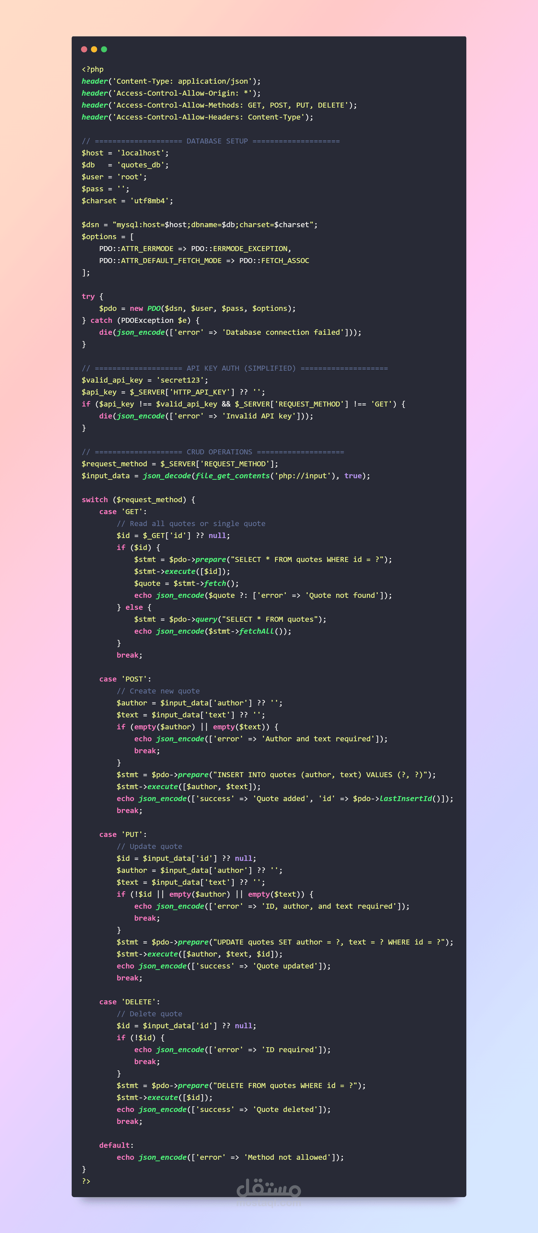 $stmt = $pdo->query("SELECT * FROM quotes");