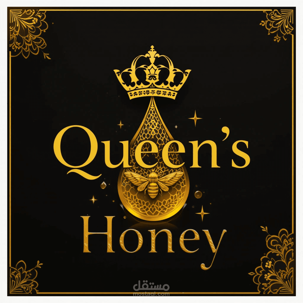 شعار يُبرز المنتج كعسل فاخر بطابع ملكي، بسيط في شكله، قوي في رسالته، وجذّاب بصريًا لأي عبوة أو إعلان.