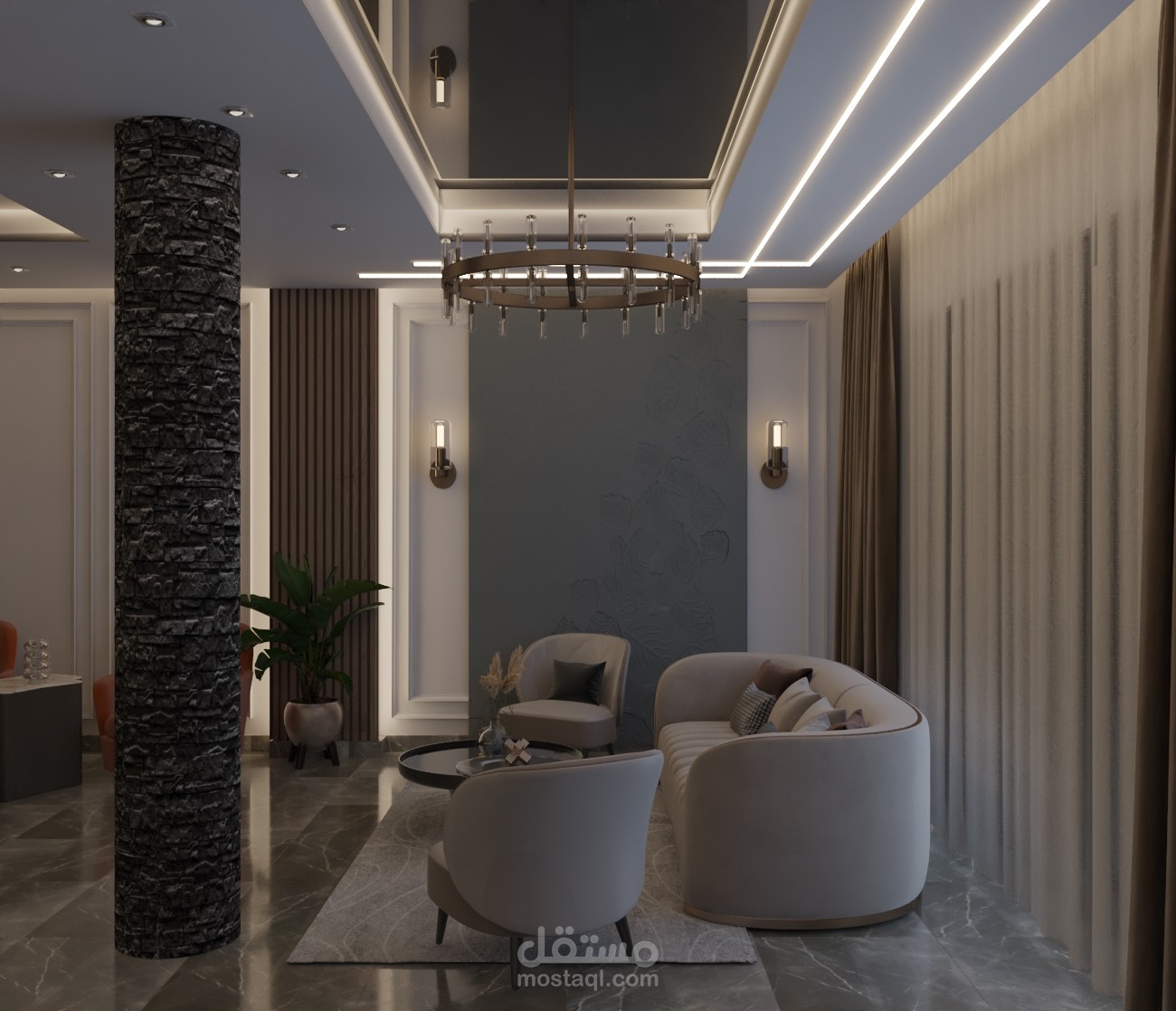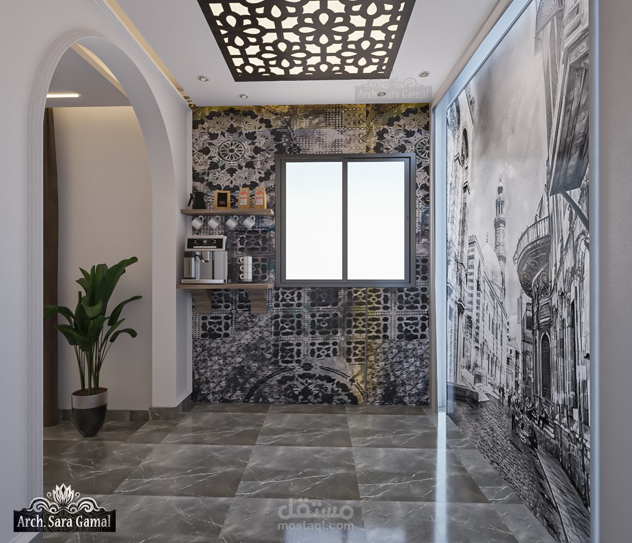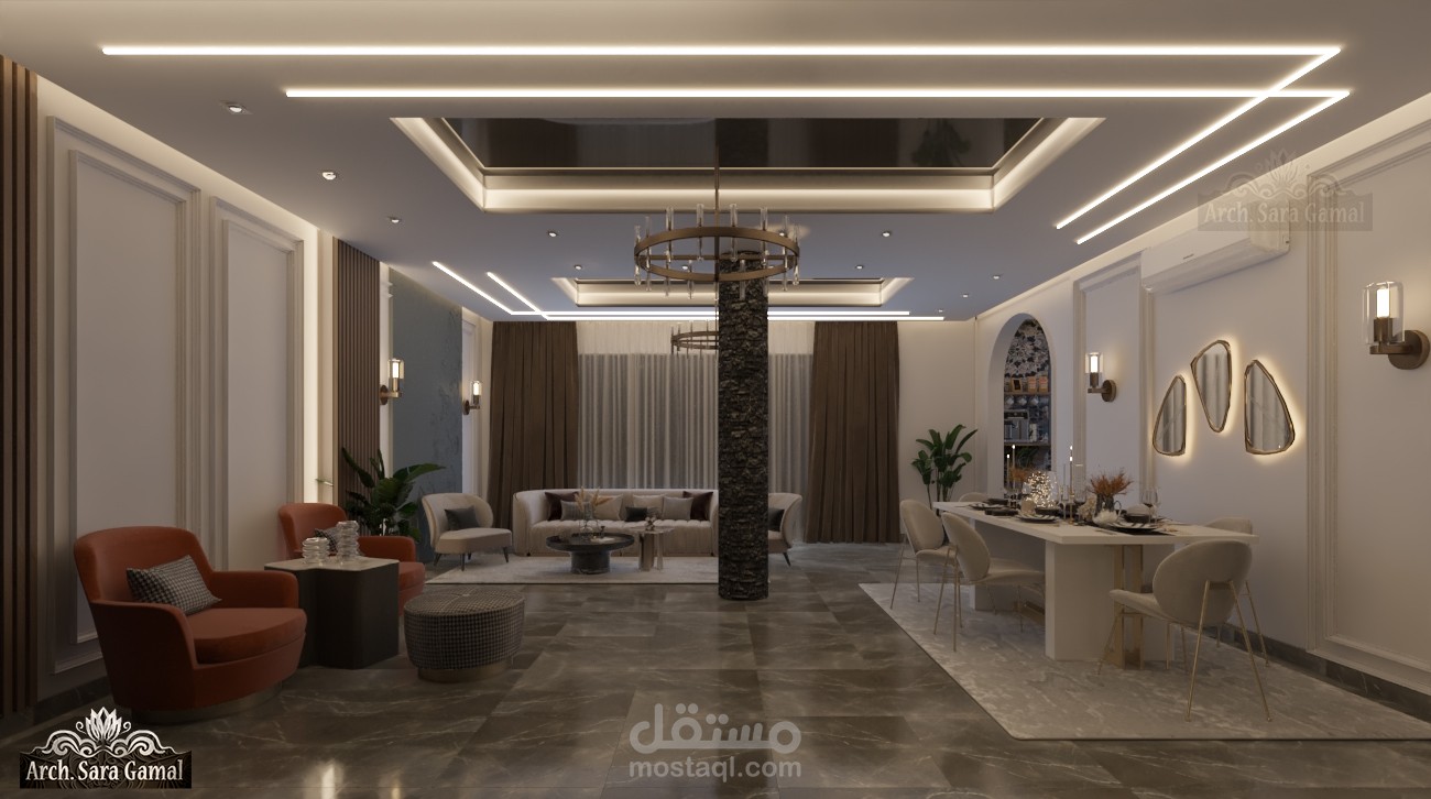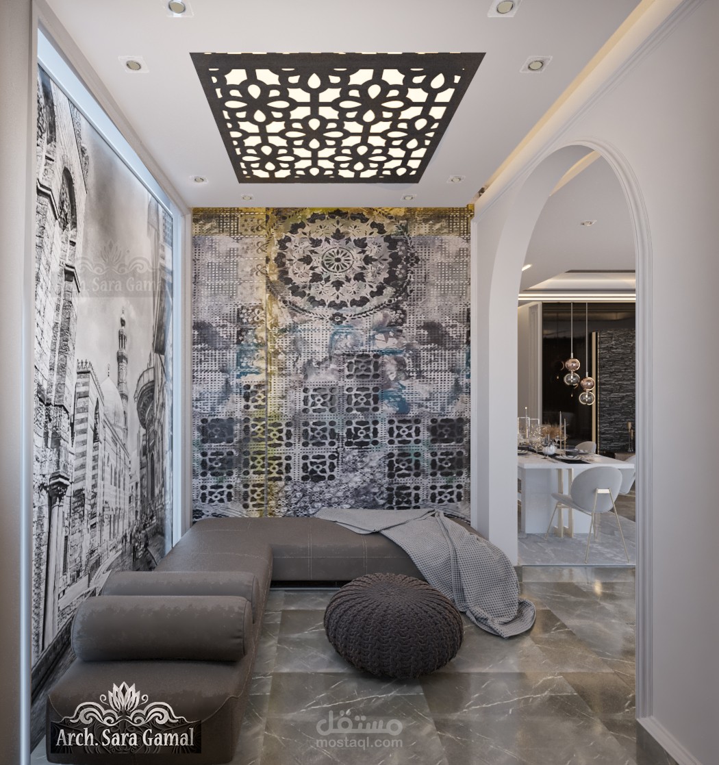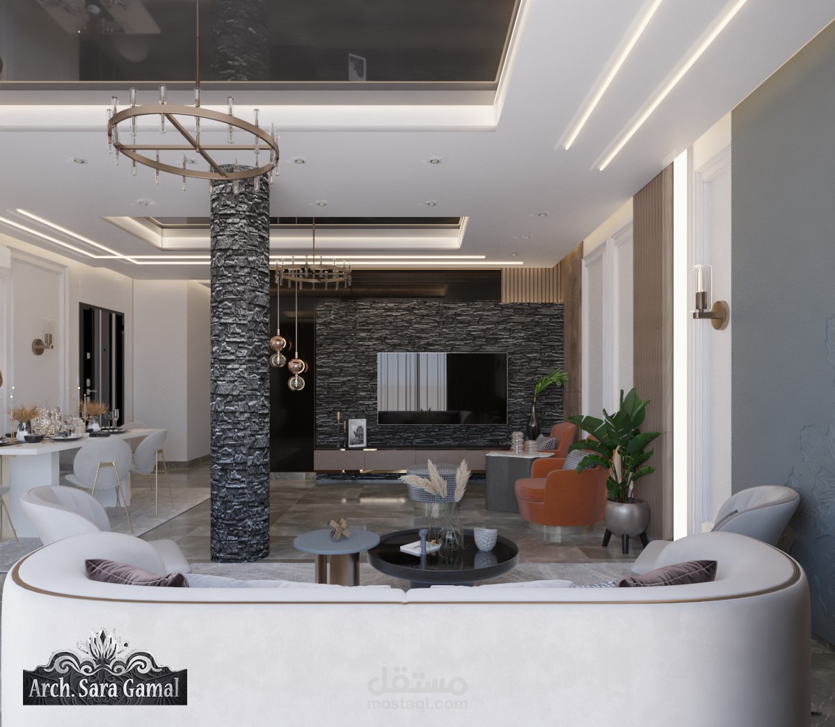 استخدام التوازن بين التفاصيل الراقية والبساطة الحديثة لخلق بيئة أنيقة ومريحة.