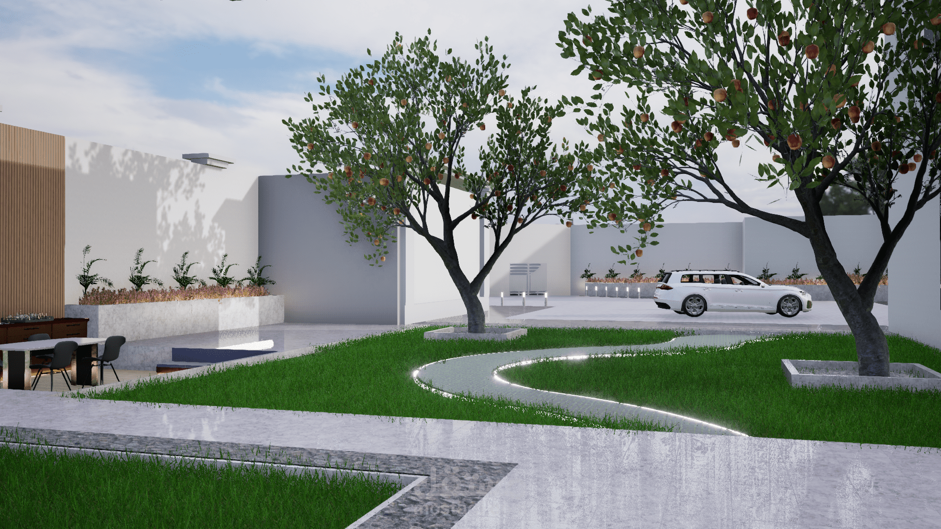 يتضمن هذا المشروع تصميمًا متكاملاً لحديقة فيلا بأسلوب عصري يجمع بين الجمال الطبيعي واللمسات الحديثة، مما يخلق بيئة خارجية مريحة ومثالية للاسترخاء والاستمتاع بالهواء الطلق.