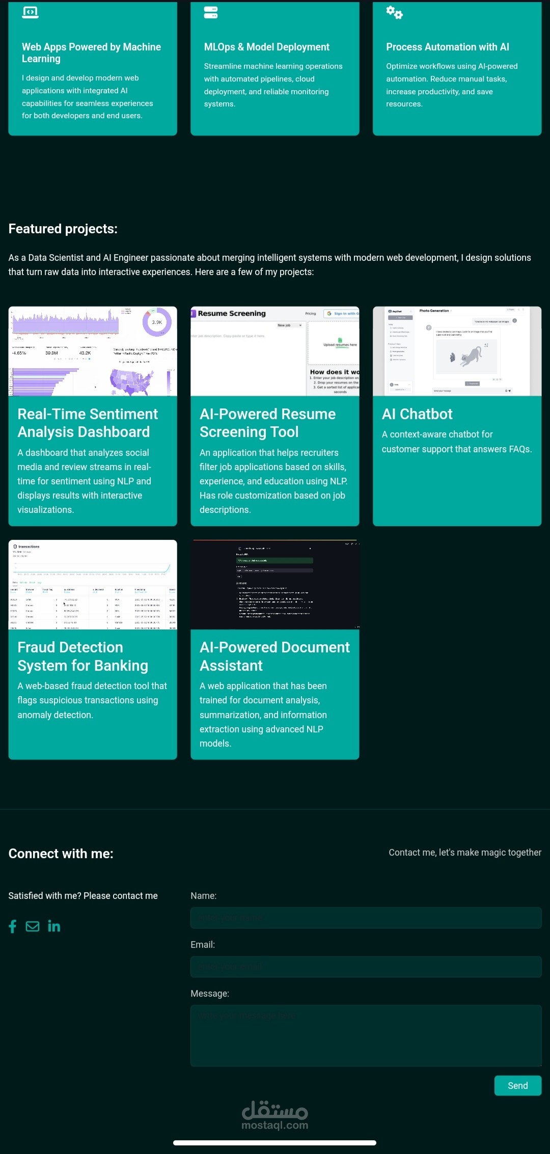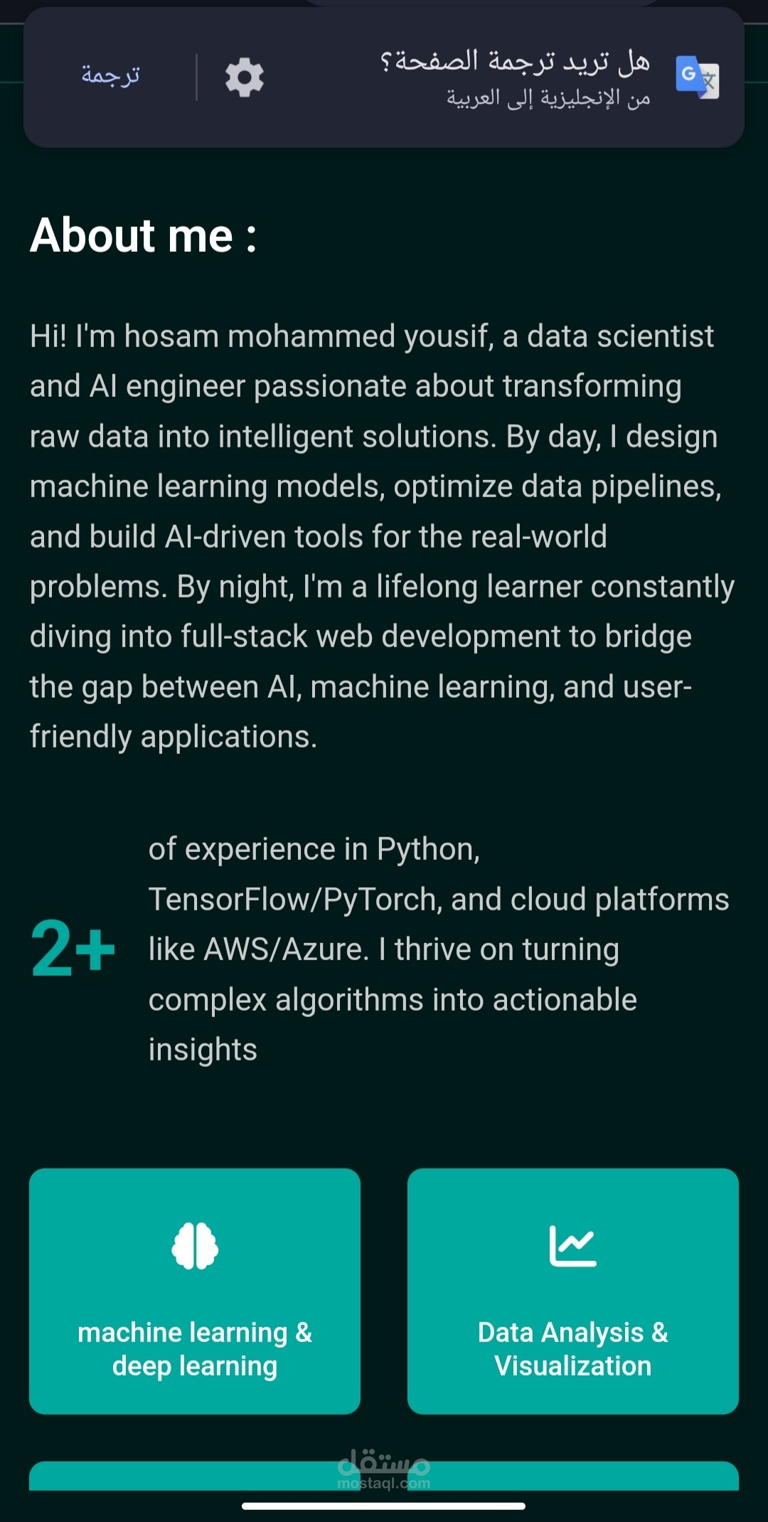 تصميم عصري وجذاب واختيار الالوان حسب التفضيلات. Personal portfolio يمكنك من خلاله نشر بياناتك واعمالك علي الإنترنت بكل سهولة مع تصميم رائع