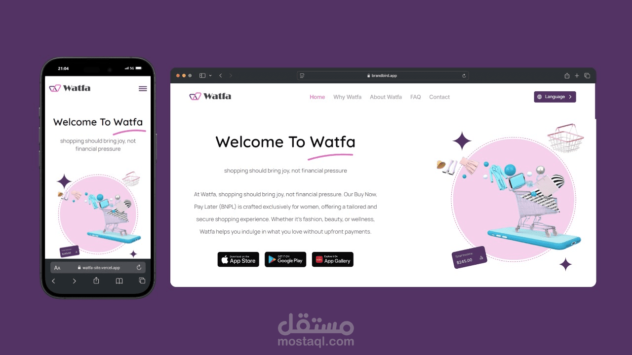 Watfa Site هو موقع معلوماتي يعرض تفاصيل تطبيق Watfa ويوفر روابط تحميل مباشرة للمستخدمين. يتميز الموقع بتصميم عصري وجذاب يعكس هوية التطبيق، مع دعم اللغتين العربية والإنجليزية لضمان تجربة استخدام مريحة لمختلف الفئات.