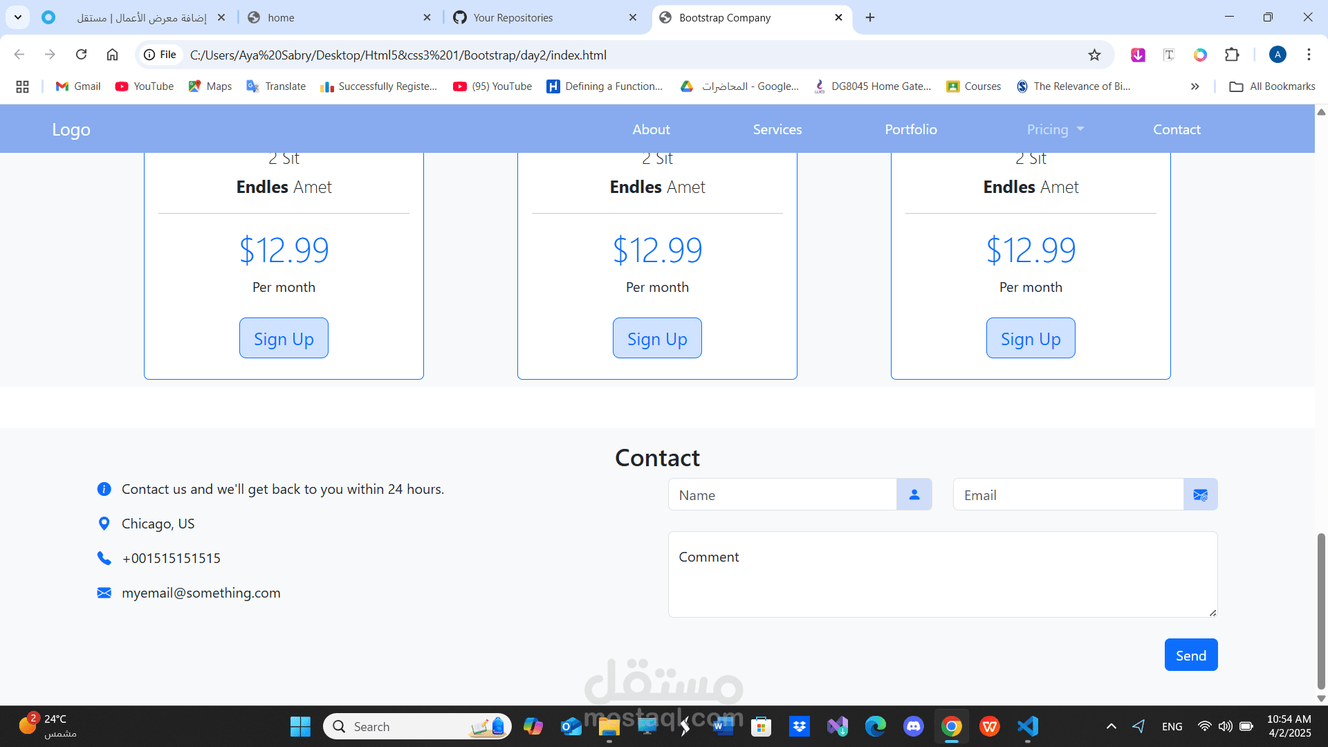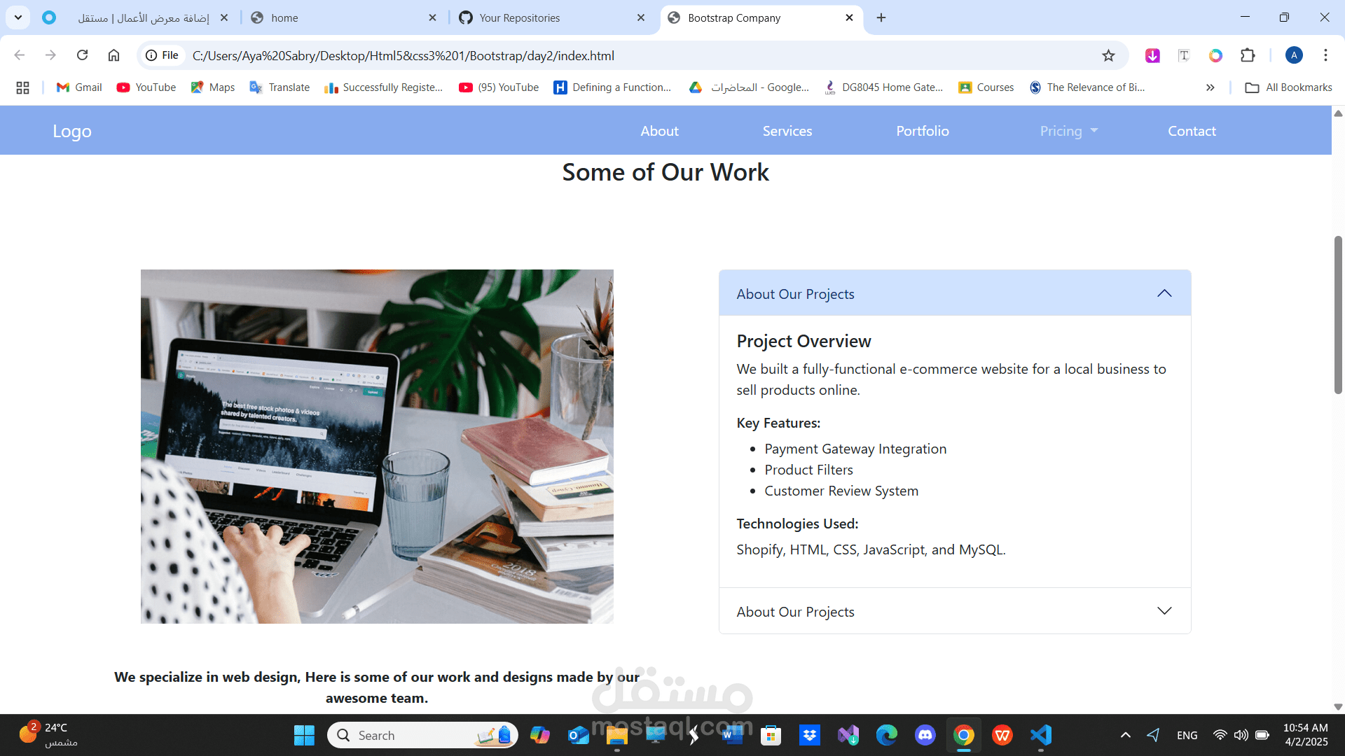 This project demonstrates my ability to create sleek and responsive business websites using Bootstrap, ensuring a seamless experience across different devices.