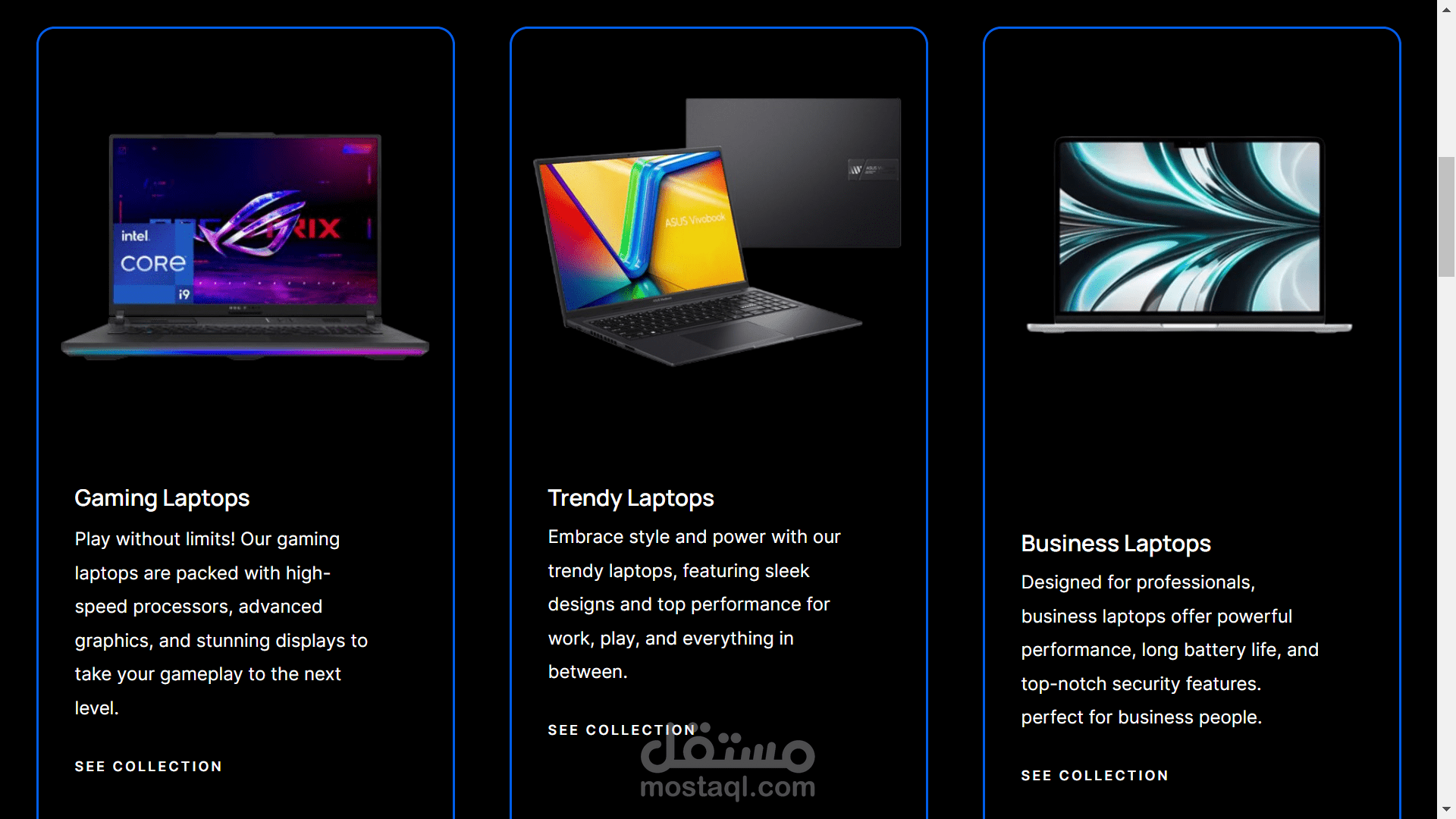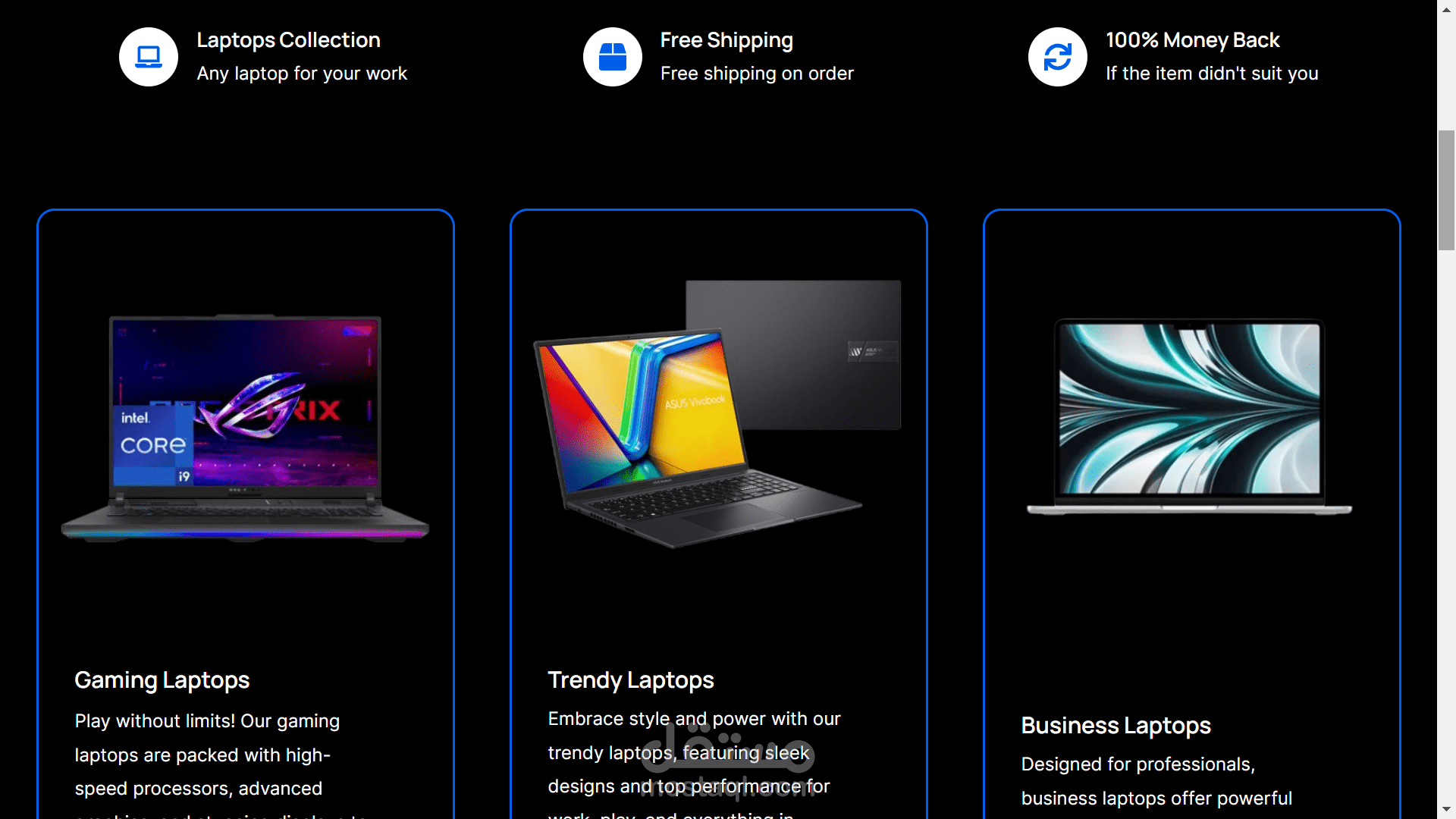 موقع لمتجر laptops متخصص في جميع الانواع