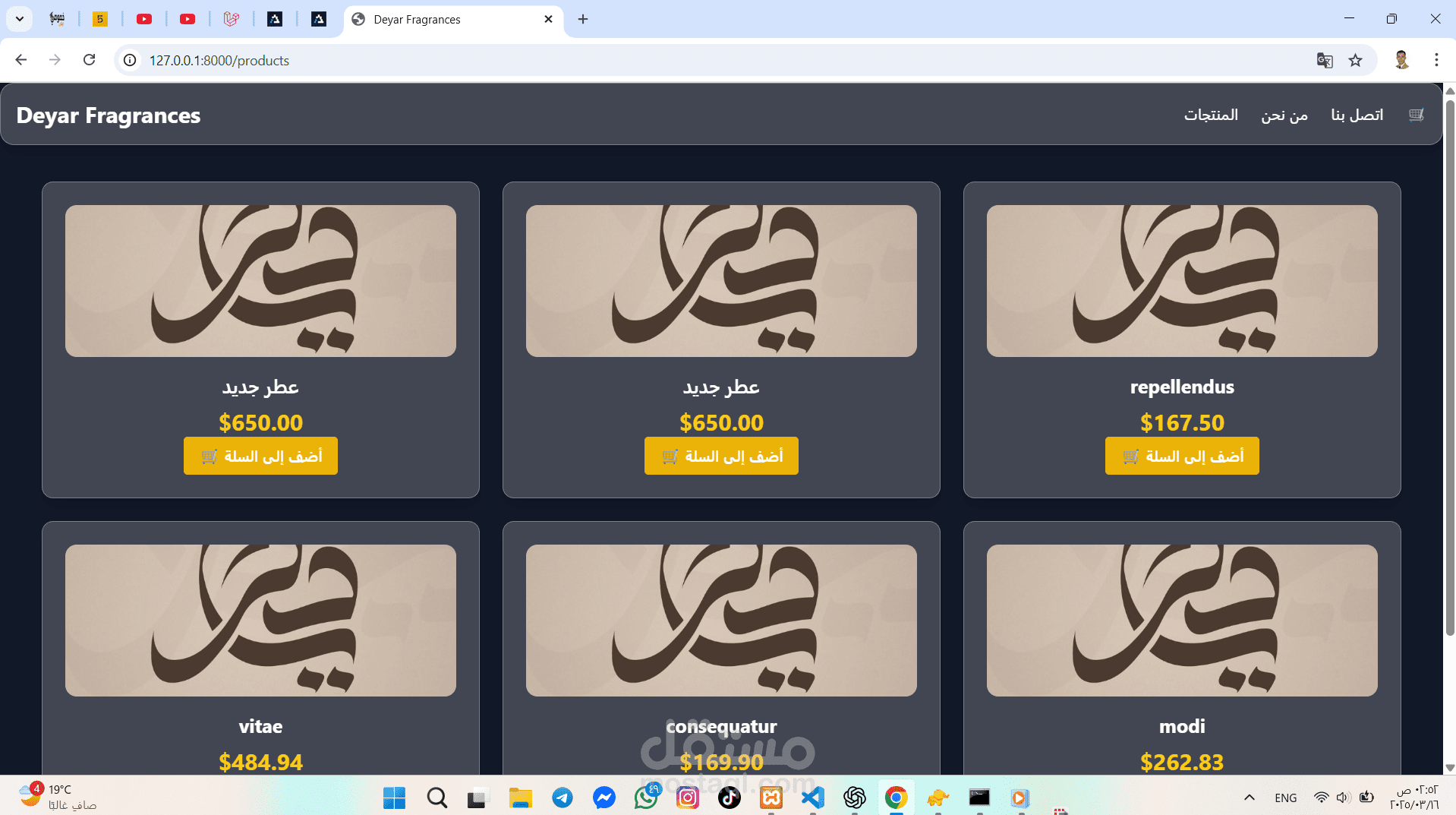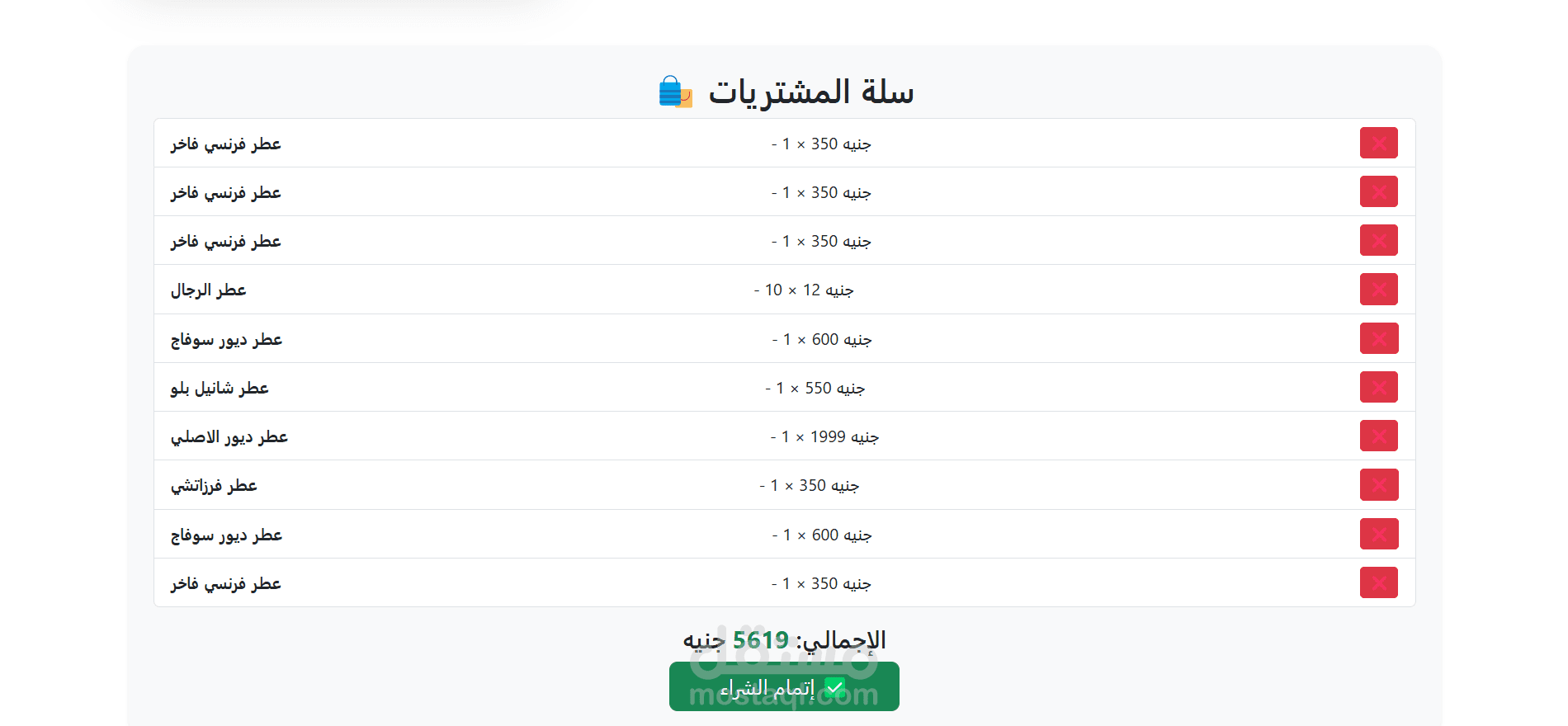 متجر متكامل لبيع العطور مع توفير وسائل دفع مختلفه و سله مشتريات و صفح لعرض المنتجات و تفاصيل كل منتج بشكل انيق و جذاب