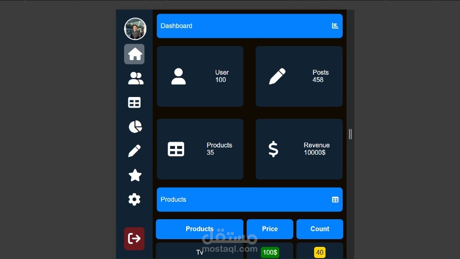 مشروع Responsive Dashboard
