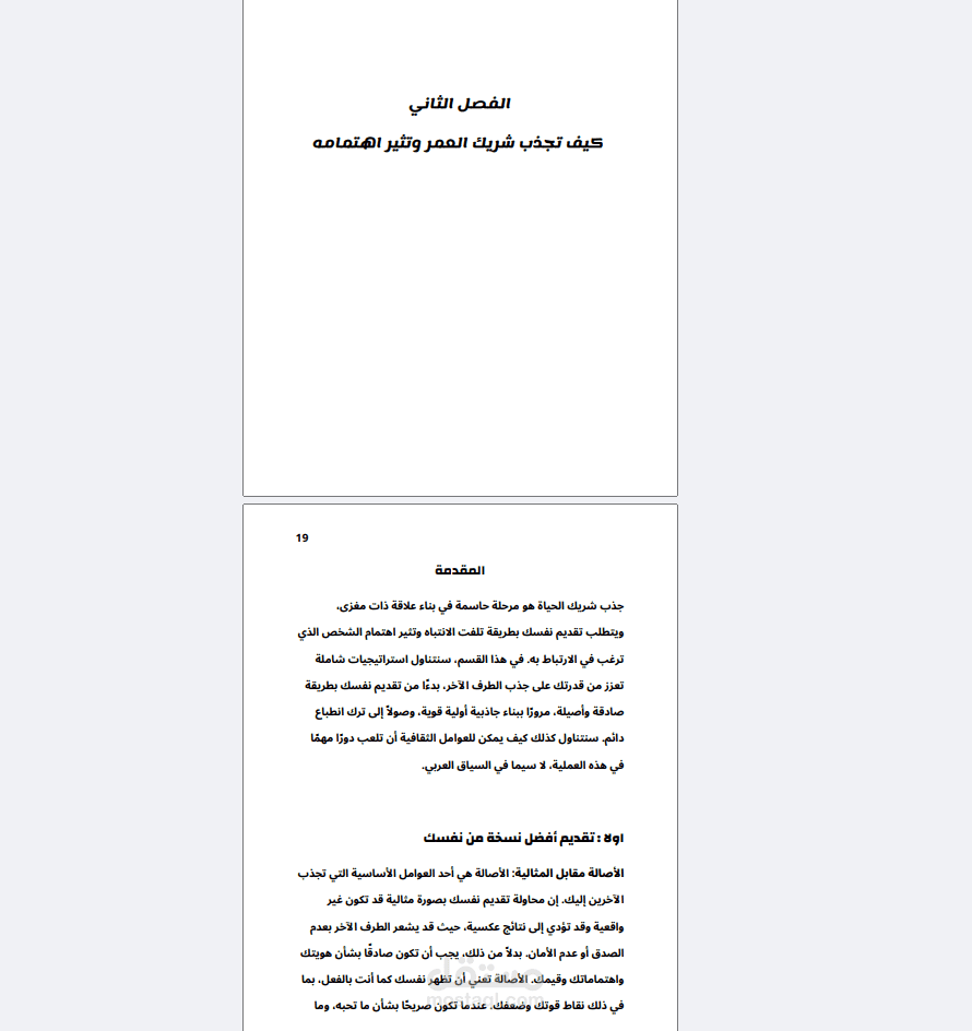 لقد كانت تجربتي في العمل ( كتاب الرحلة الى قلب الآخر - دليل شامل من التعارف الى الزواج بعيون العلم ) مليئة بالتحديات والفرص ، وكان من أبرز مشاريعي في هذا المجال كتابة هذا الكتاب إلالكتروني العلمي مستهدفا المهتمين بعلاقاتهم العاطفية.