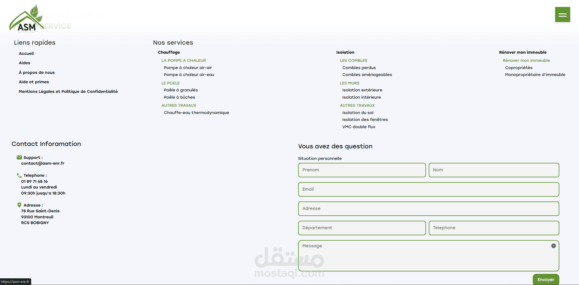 تم تطوير هذا الموقع الإلكتروني الخاص بـ ACM Construction بهدف توفير حلول متقدمة في مجال التجديدات الطاقوية للمنازل الفرنسية. يقدم الموقع خدمات متميزة تساعد الأشخاص على تحسين كفاءة الطاقة في منازلهم، مما يساهم في تقليل استهلاك الطاقة والحفاظ على البيئة. يتميز الموقع بتصميم عصري وجذاب، ويعتمد على تقنيات حديثة مثل Next.js و TypeScript لضمان الأداء العالي وتجربة مستخدم رائعة. كما يستخدم الموقع Framer Motion لإضافة رسومات متحركة سلسة وجذابة، و AWS (Amazon Web Services) لاستضافة الموقع وتخزين البيانات بشكل آمن وموثوق.