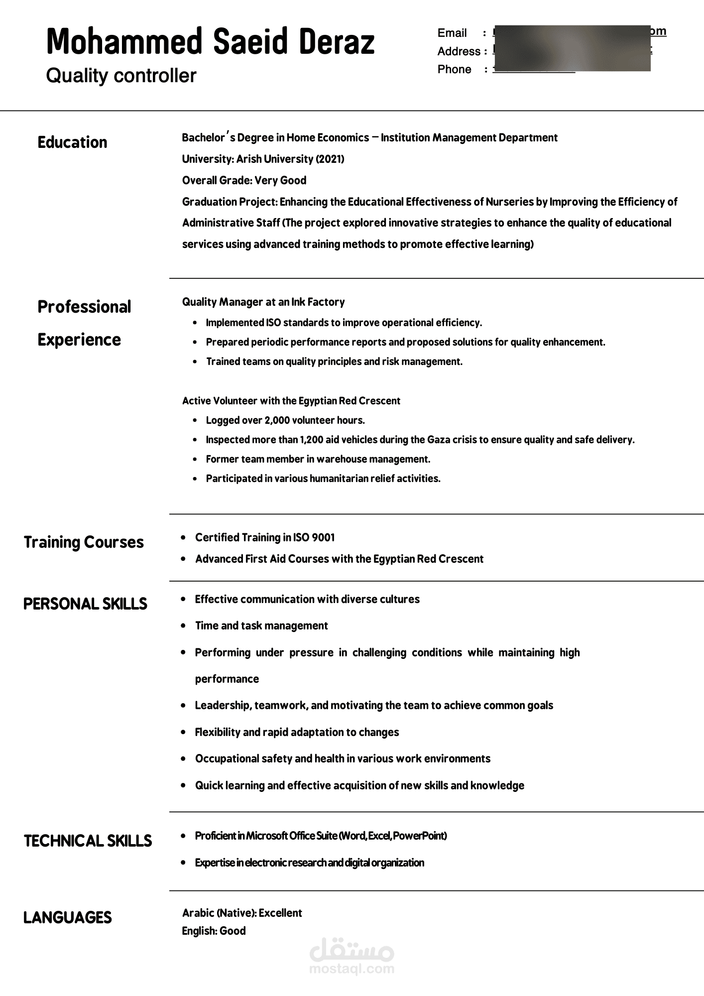 في هذا العمل ، قمت بإنشاء سيرة ذاتية احترافية متوافقة مع أنظمة تتبع المتقدمين (ATS) مما يضمن وصولها إلى مديري التوظيف واجتيازها الفحص الآلي بسهولة.