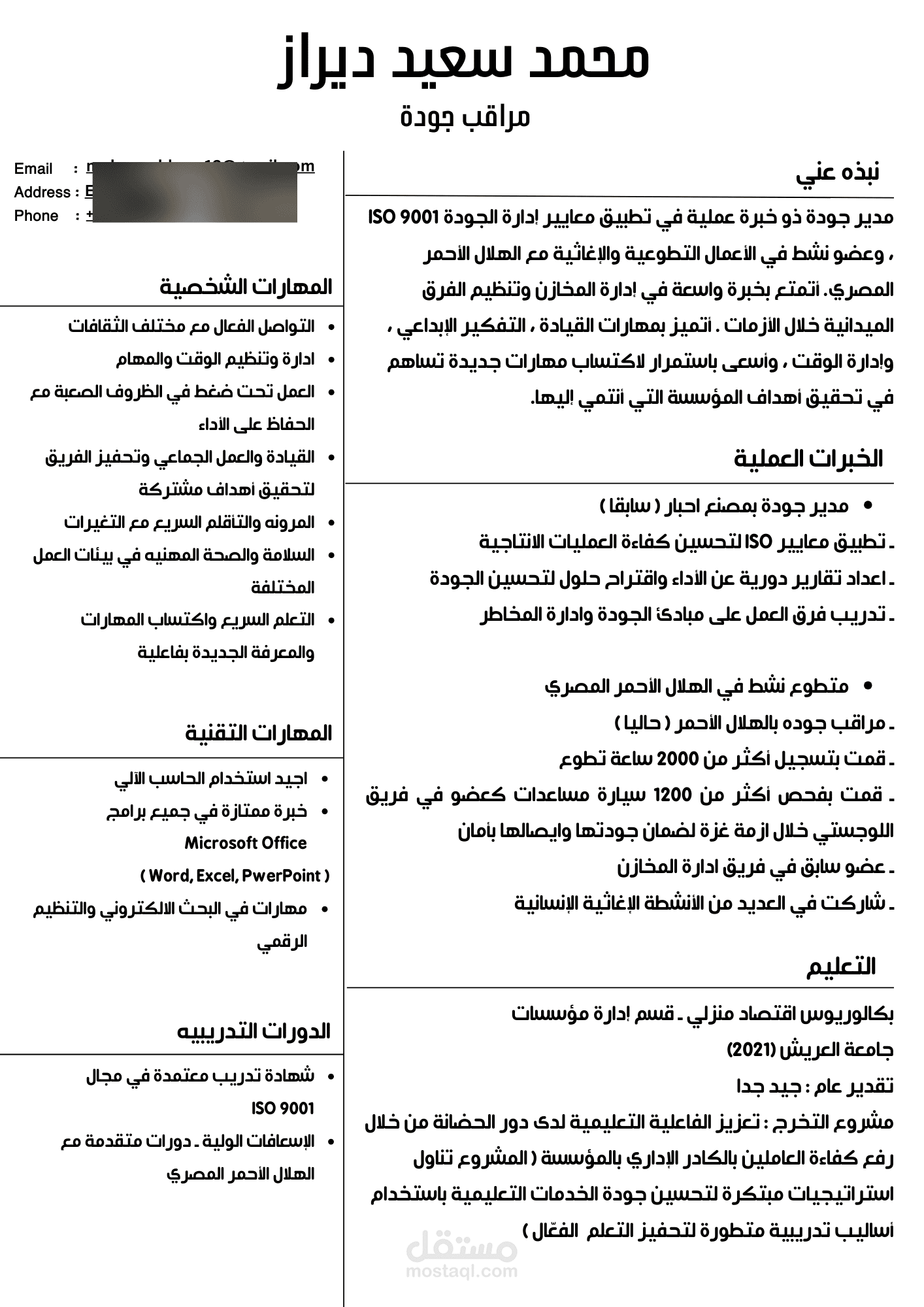 - تنسيق احترافي وجذاب يعكس هوية المتقدم بشكل مميز.