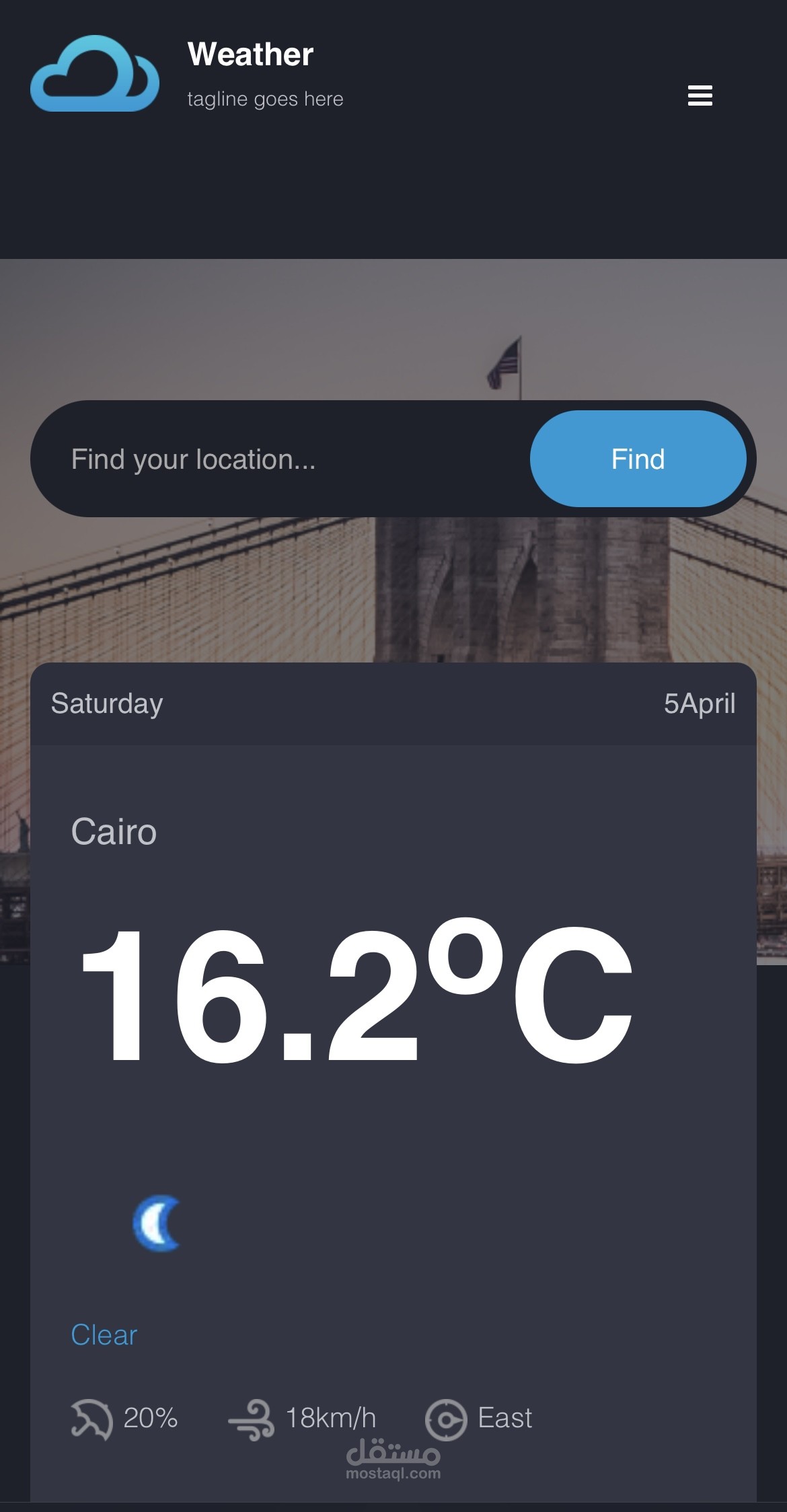 في هذا التمرين العملي، قمت بتطوير موقع ويب يعرض حالة الطقس لمدة 3 أيام لأي مدينة يقوم المستخدم بإدخال اسمها في خانة البحث. يعتمد المشروع على استهلاك بيانات الطقس من WeatherAPI باستخدام fetch والتعامل مع JSON، كما تم الاعتماد على أدوات الـ Front-End