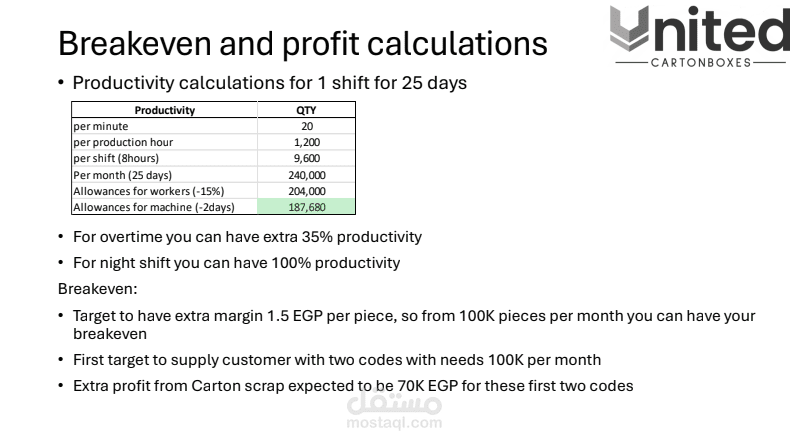 عمل جميع الحسابات اللازمة لبدأ المشروع ,عمل حسابات وتوقع للمكاسب المستقبليه