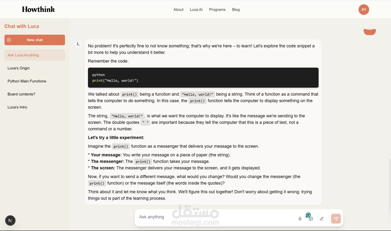Luca AI Tutor is an innovative, inquiry-based learning tool I designed to deliver hyper-personalized education.