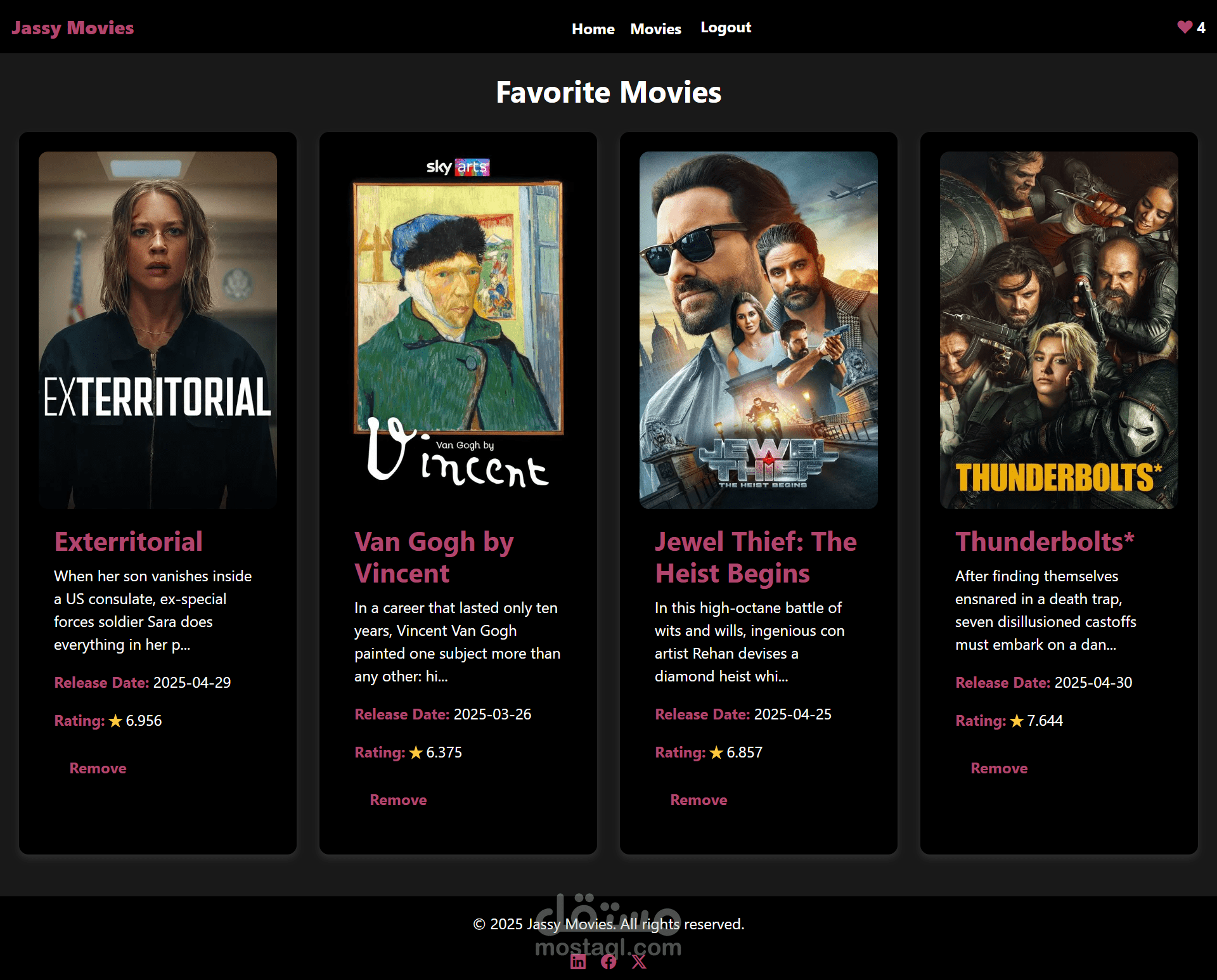 يركز المشروع على التصميم المتجاوب، والتنقل السلس بين الصفحات، وإدارة بيانات الأفلام بكفاءة. ويُعد مثالًا رائعًا على استخدام React لإنشاء تجربة تصفّح أفلام ديناميكية وجذابة.