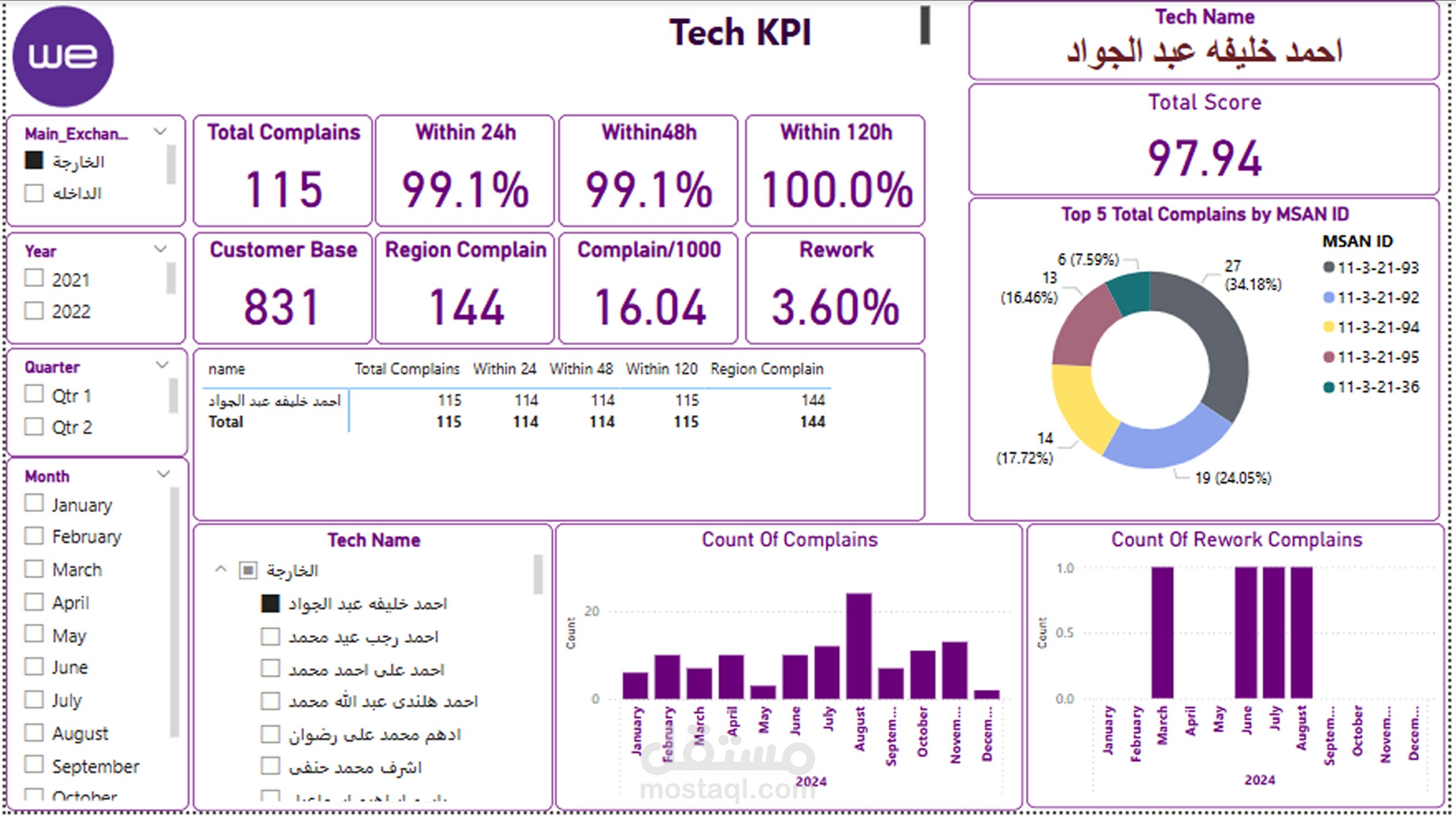 تهدف هذه اللوحة إلى تحسين تجربة العملاء من خلال الاستفادة من رؤى البيانات التشغيلية، مما يتيح اتخاذ قرارات أسرع وأكثر فعالية لتحسين جودة الخدمة.