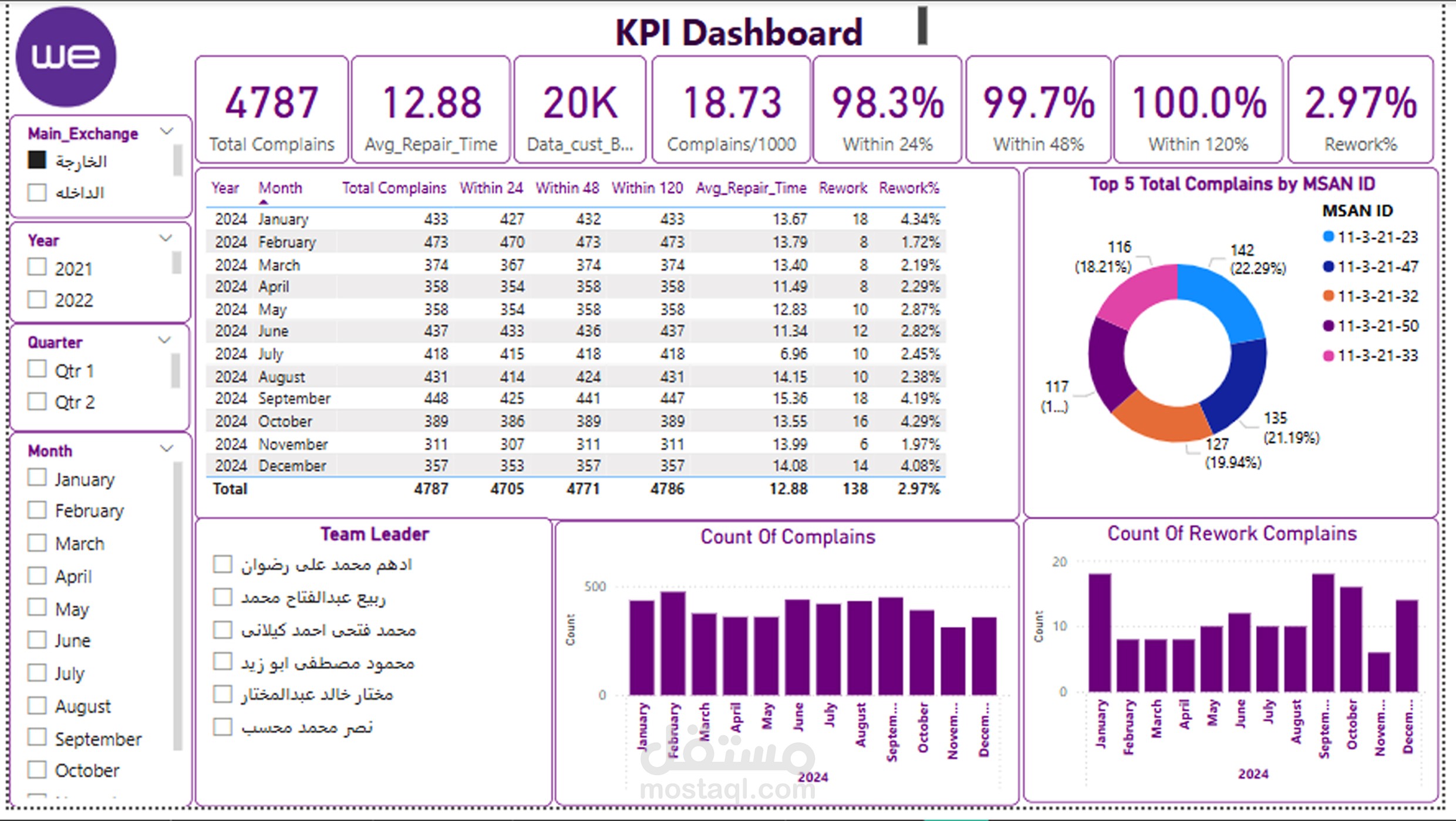 يسعدني أن أشارككم أحدث لوحة معلومات تفاعلية صممتها لتحليل وتتبع مؤشرات الأداء الرئيسية التشغيلية لرضا العملاء في قطاع الاتصالات.